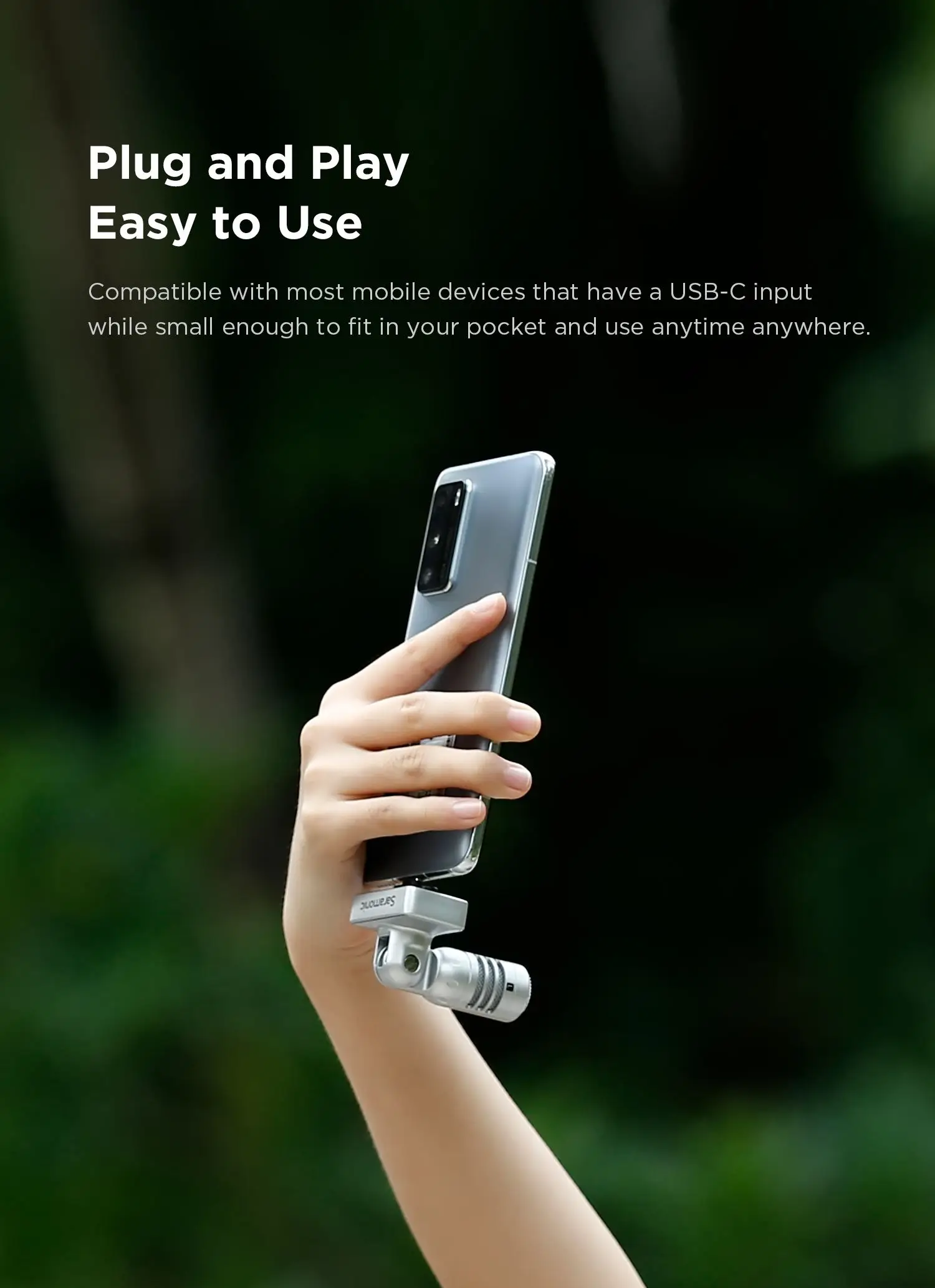 It utilizes a bidirectional polar pattern to provide consistent and stereo pickup from the left and right sides. The built-in headphone output allows users to keep the intelligibility of dialogue and ensure clear and broadcast-quality sound. Powered by USB-C devices, it requires no batteries and gives a direct connection to your device, open a recording/video app to go.