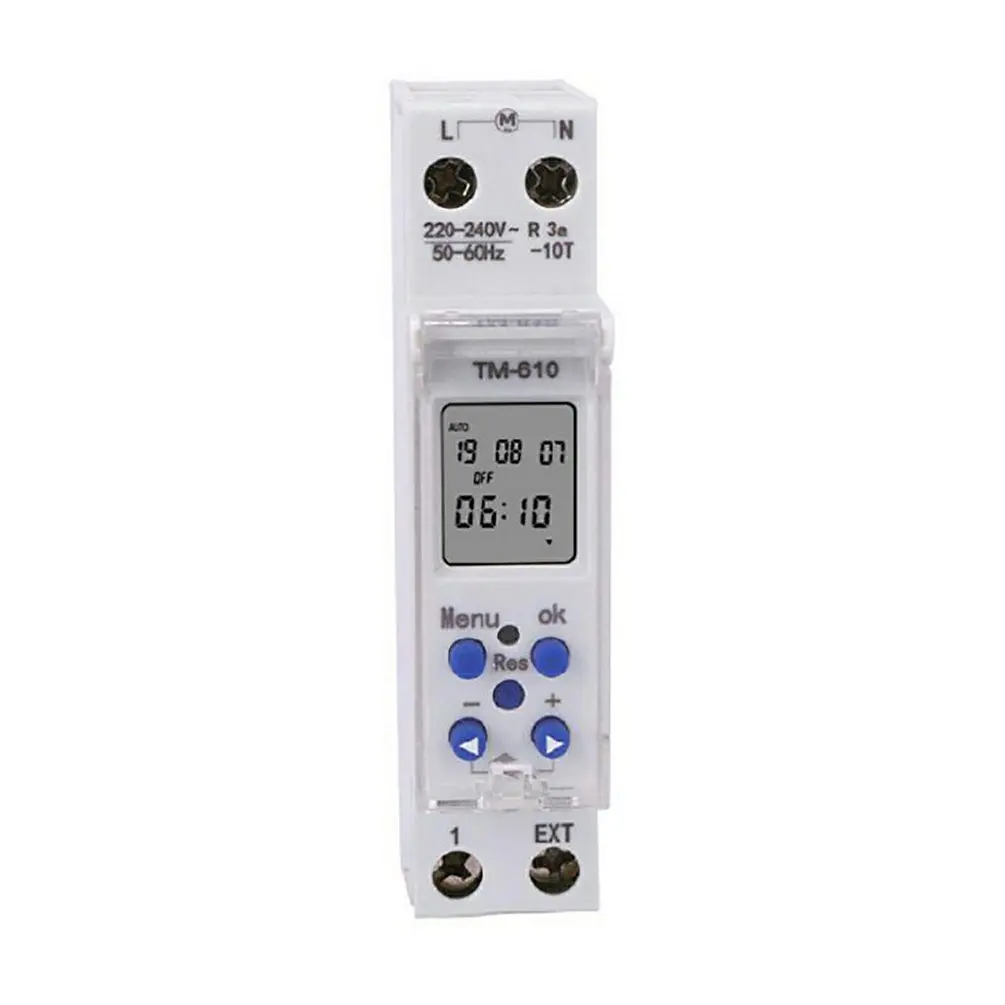 Программируемый таймер TM610 18 мм шириной 7 дней 24 часа может автоматически включать и выключать различные типы электрического оборудования в определенные сроки до недели и может работать циклически в неделю или день (от одного mnute до 168 часов) В соответствии с предустановленными программами.