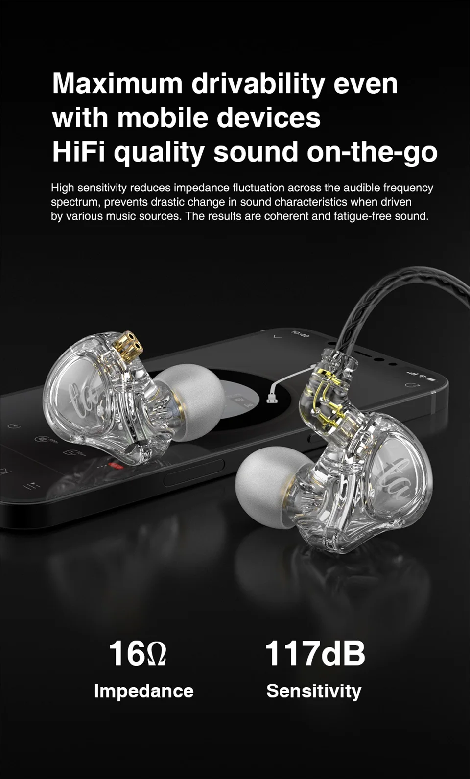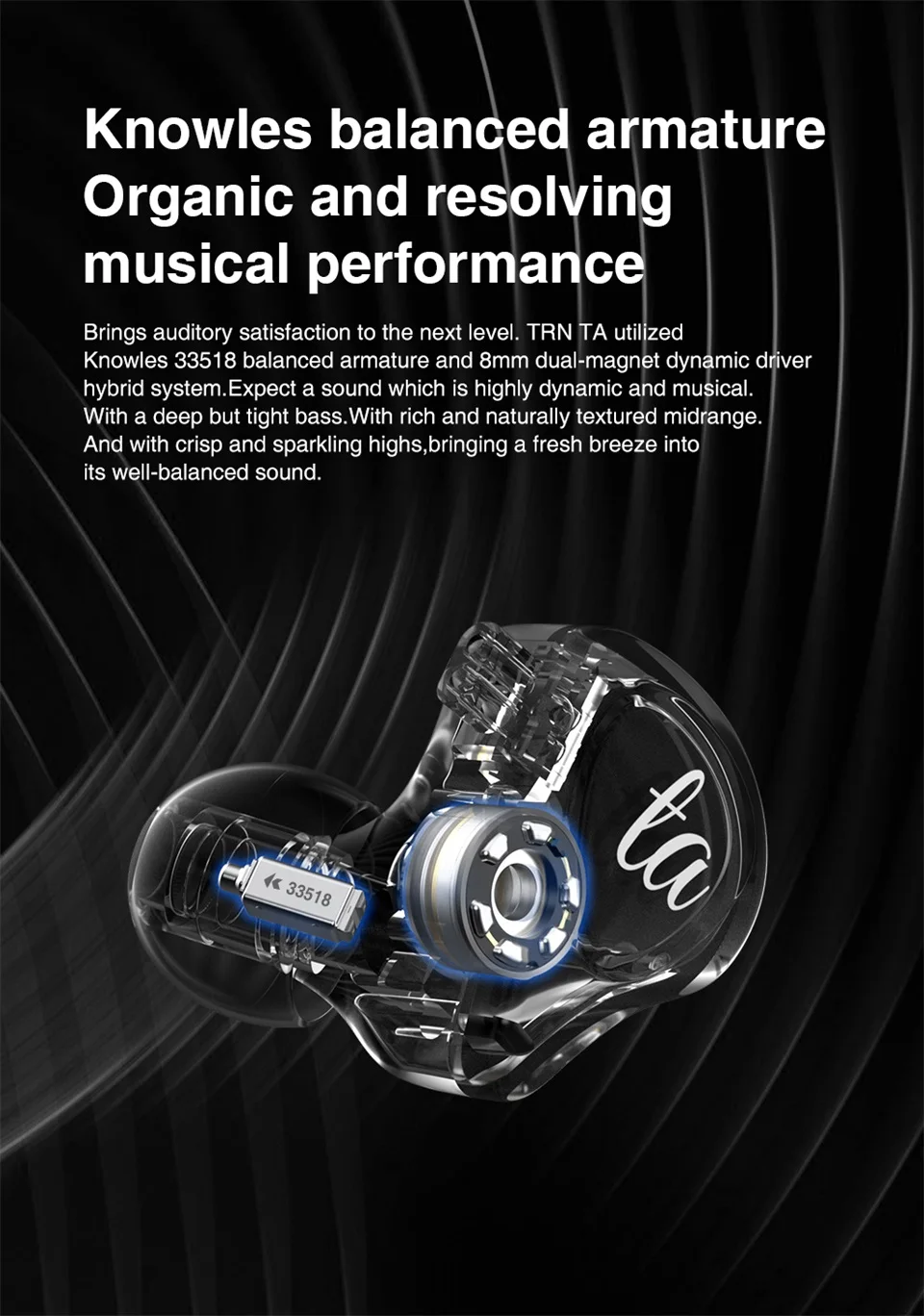 15. Блок драйвера: 1BA + 1DDГибридный Драйвер (Супер-размерKnowles 33518,8 мм динамический)