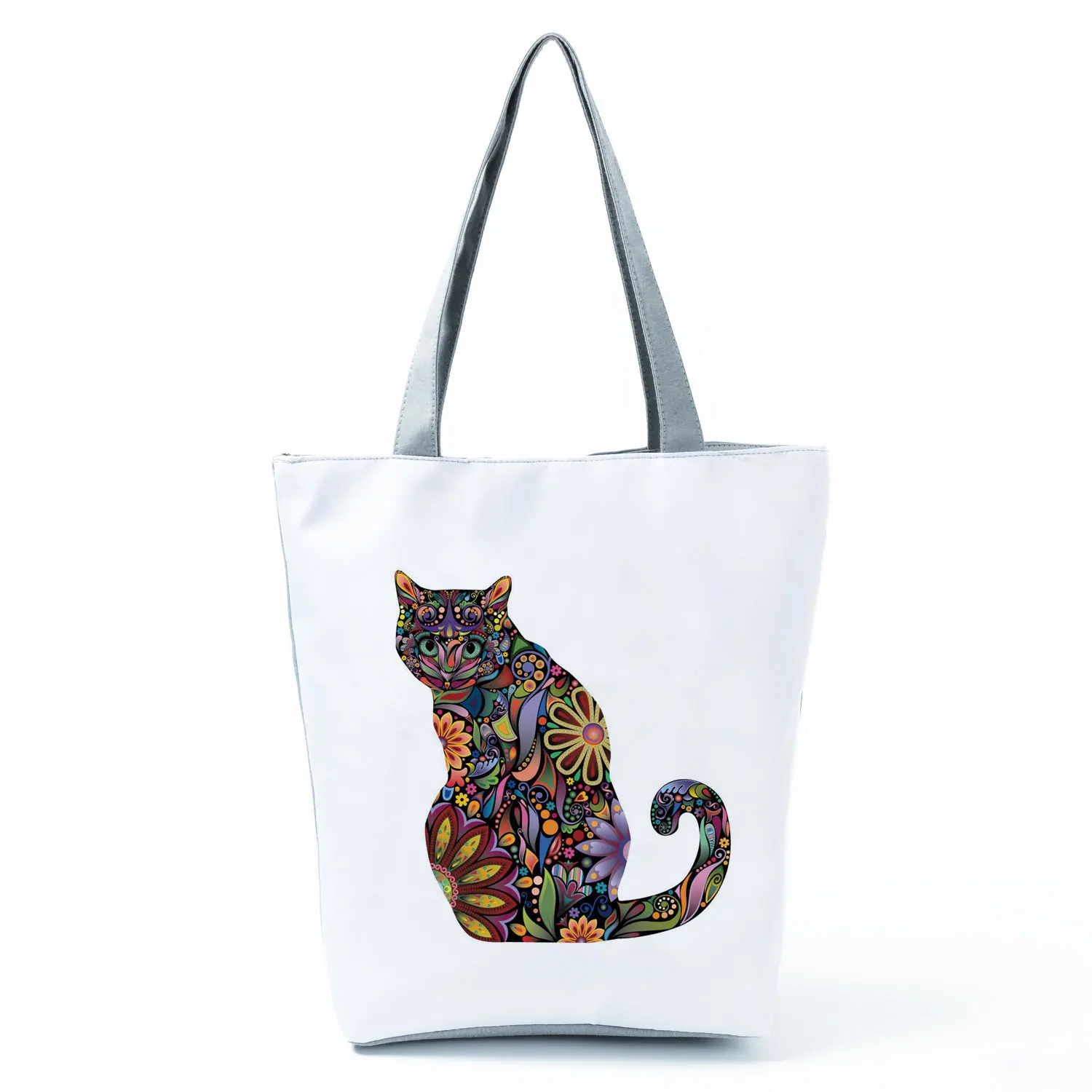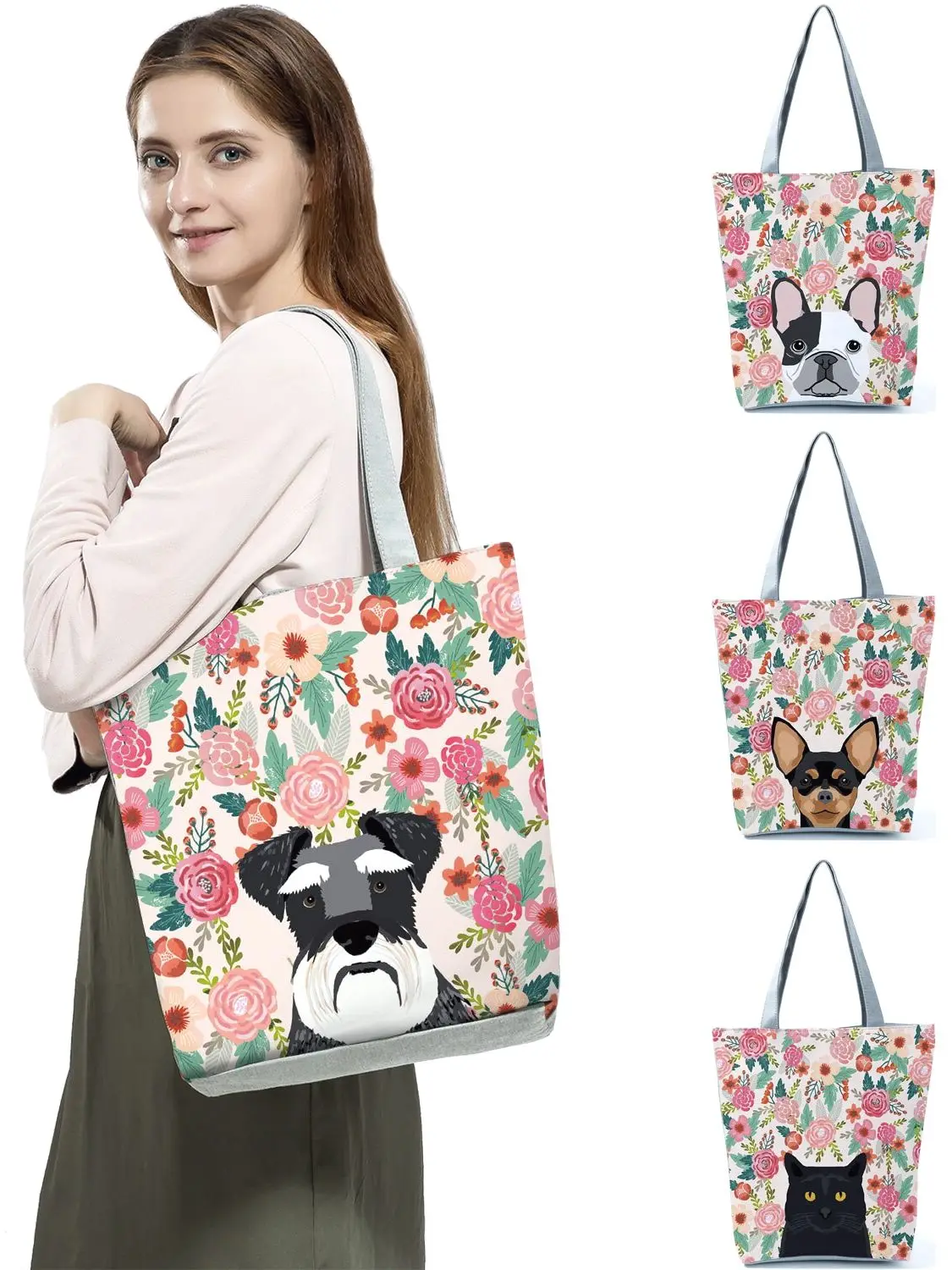 Женская сумка-тоут с цветочным принтом для домашних животных, собак, кошек, повседневная школьная сумка через плечо, многоразовые сумки для покупок для супермаркетов на заказ