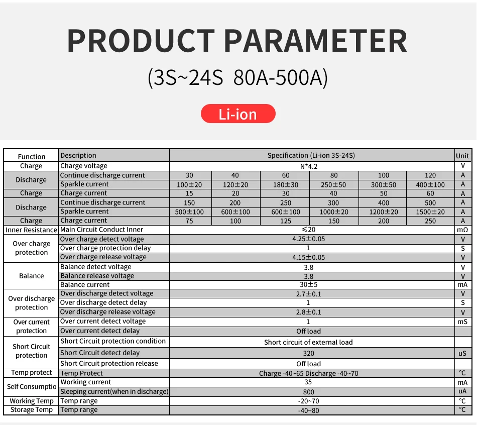 У нас есть DALY bms от 3S до 32S, вся текущая версия 10A ~ 500A, и есть UART/CAN/485 версия, если они вам нужны, свяжитесь с нами ~