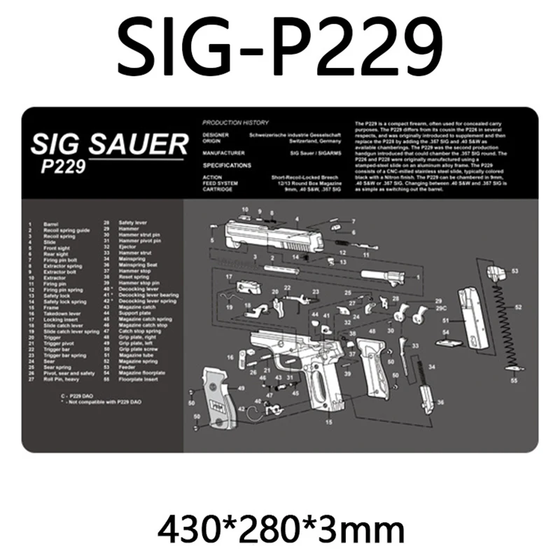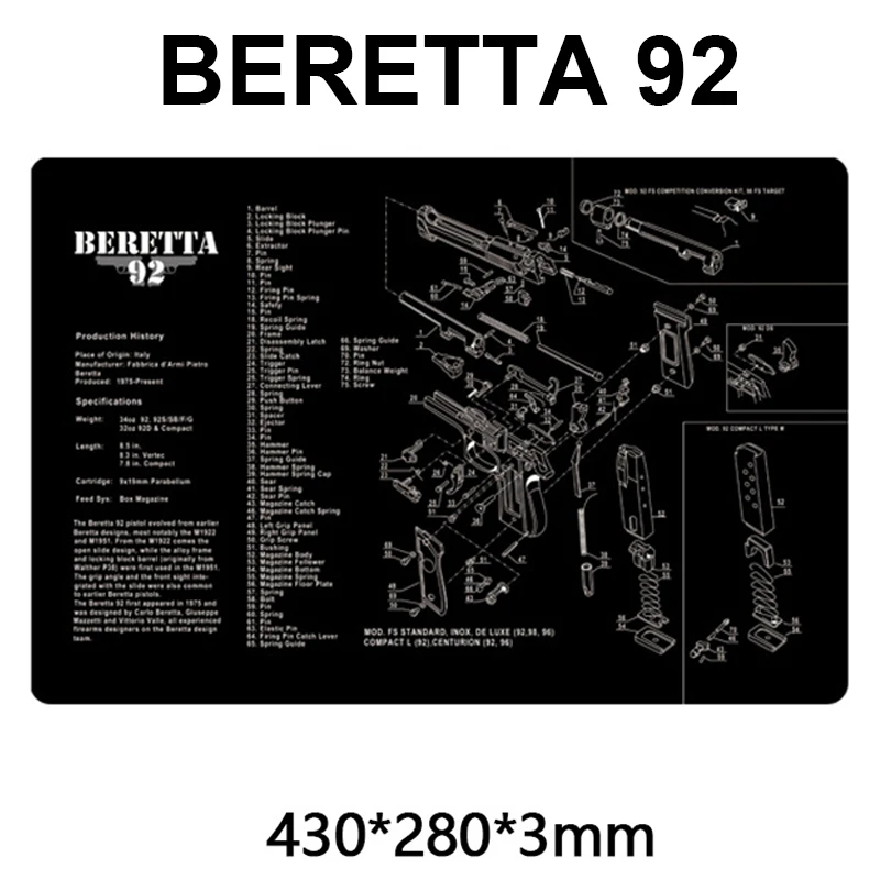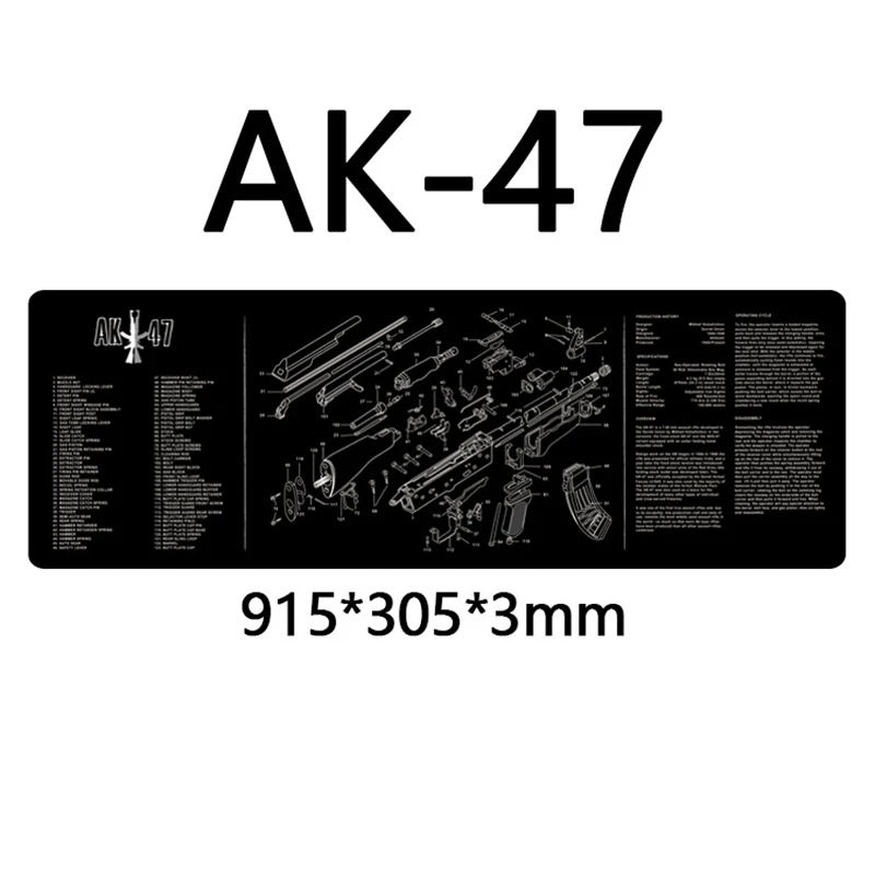 -С защитным слоем, даже если на чистящем коврике есть капли масла и воды, мы можем гарантировать, что продукт будет таким же хорошим, как и новый после протирания. С четкой печатью схемы пистолета, вы можете положить ваши аксессуары на него tidily.