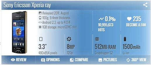 3,3 дюйма, 30,0 cm2 (~ 51.0% соотношение между экраном и корпусом)