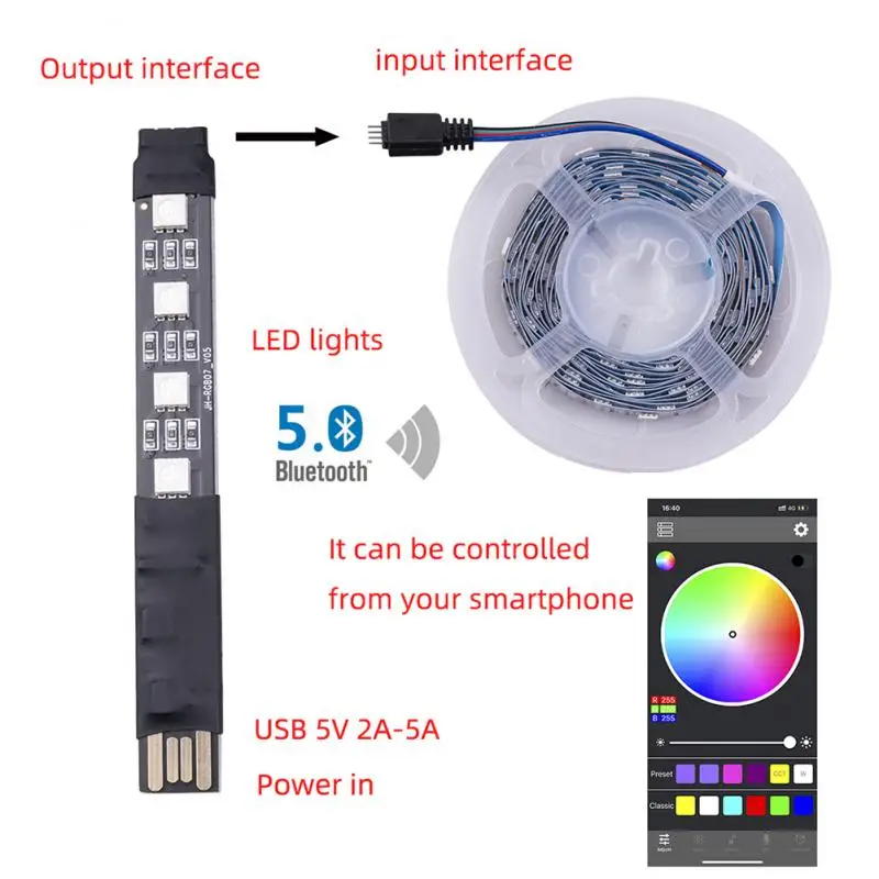 Вставьте usb-порт питания, откройте приложение «Мобильный телефон», подключите приложение «мобильный телефон» через Bluetooth и управляйте встроенным светодиодный светильник