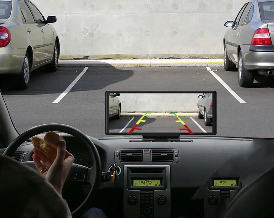 Когда автомобиль находится на заднем ходу, этот Автомобильный видеорегистратор автоматически переключается на изображение камеры заднего вида с помощью линии парковки