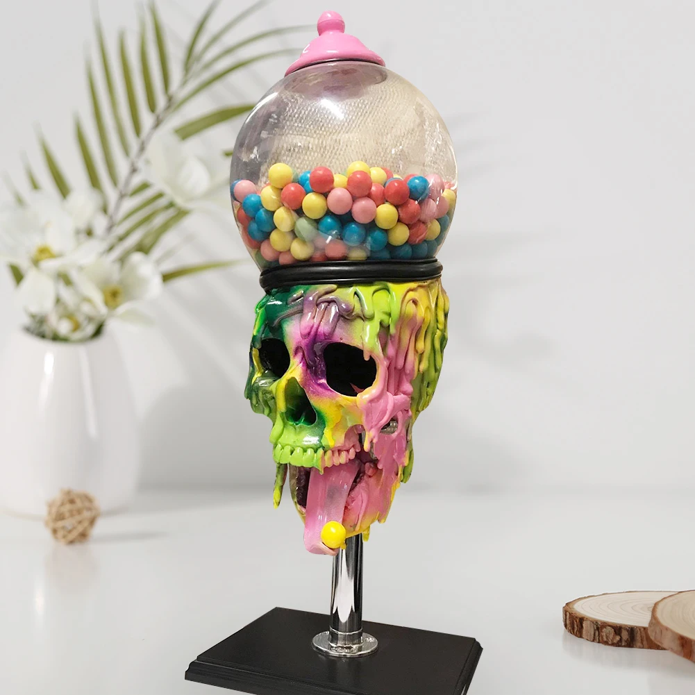 Хэллоуин ужас смолы жевательная резинка плавления красочный череп машина прозрачные конфеты банки вечерние конфеты диспенсер для хранения бак десерт Дисплей Стенд подарок для детей