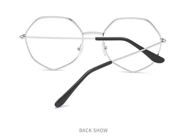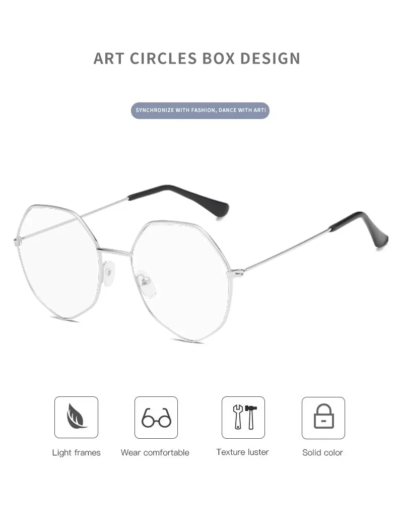 Frame material: metalStyle: full frameGlasses style: polygonItem No.: L5077 MetalFrame color: silverApplicable people: general
