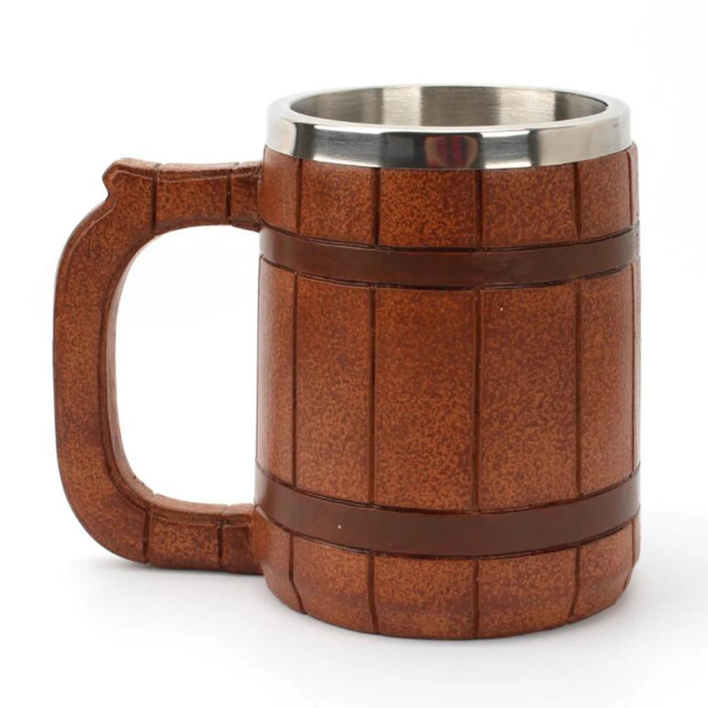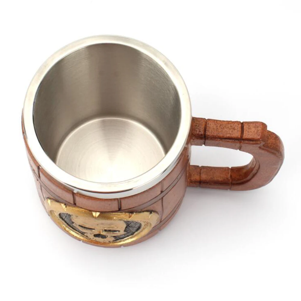 Большая емкость кружка с черепом, креативная кружка из нержавеющей стали, деревянная бочка в форме кофейного пива, 600 мл, бар, отличный подарок на Хэллоуин