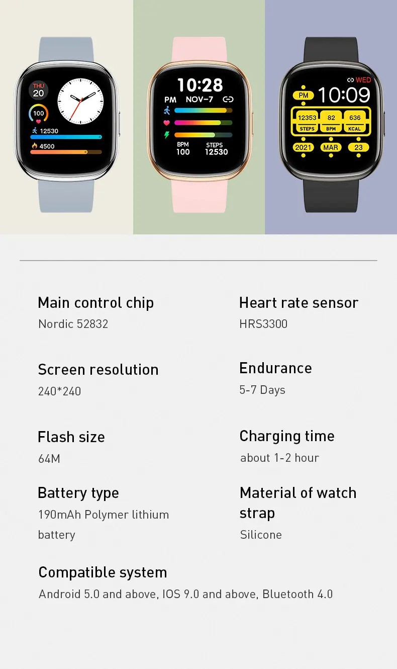 Дисплей: 1,3 квадратный экран, TFT IPS полный угол обзора