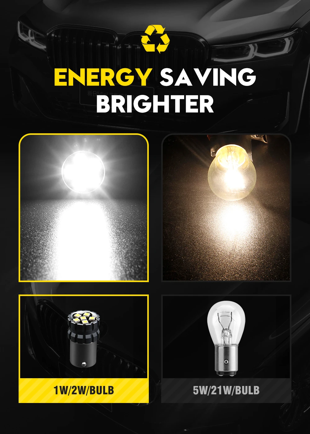 -Энергосбережение, обеспечивая более высокую яркость, чем галогенные лампы