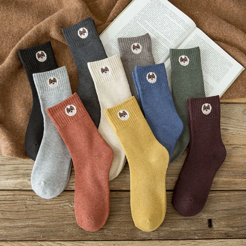 5 пар Лот разноцветных толстых зимних махровых носков для девочек повседневные теплые шерстяные носки Harajuku