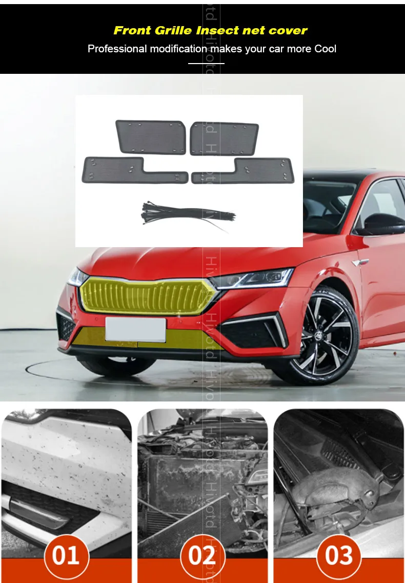 Для Skoda Octavia Pro A8 2021 2022 Автомобильная сетка для скрининга насекомых Передняя Решетка Вставка Сетка передняя крышка для скрининга насекомых аксессуары