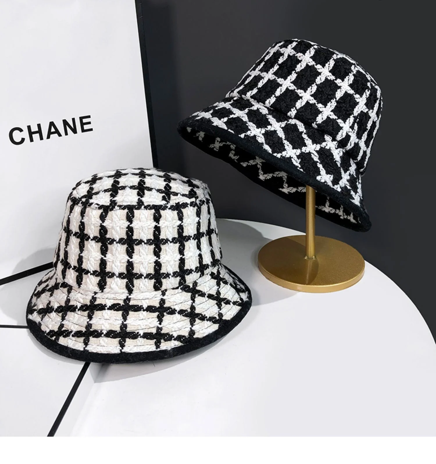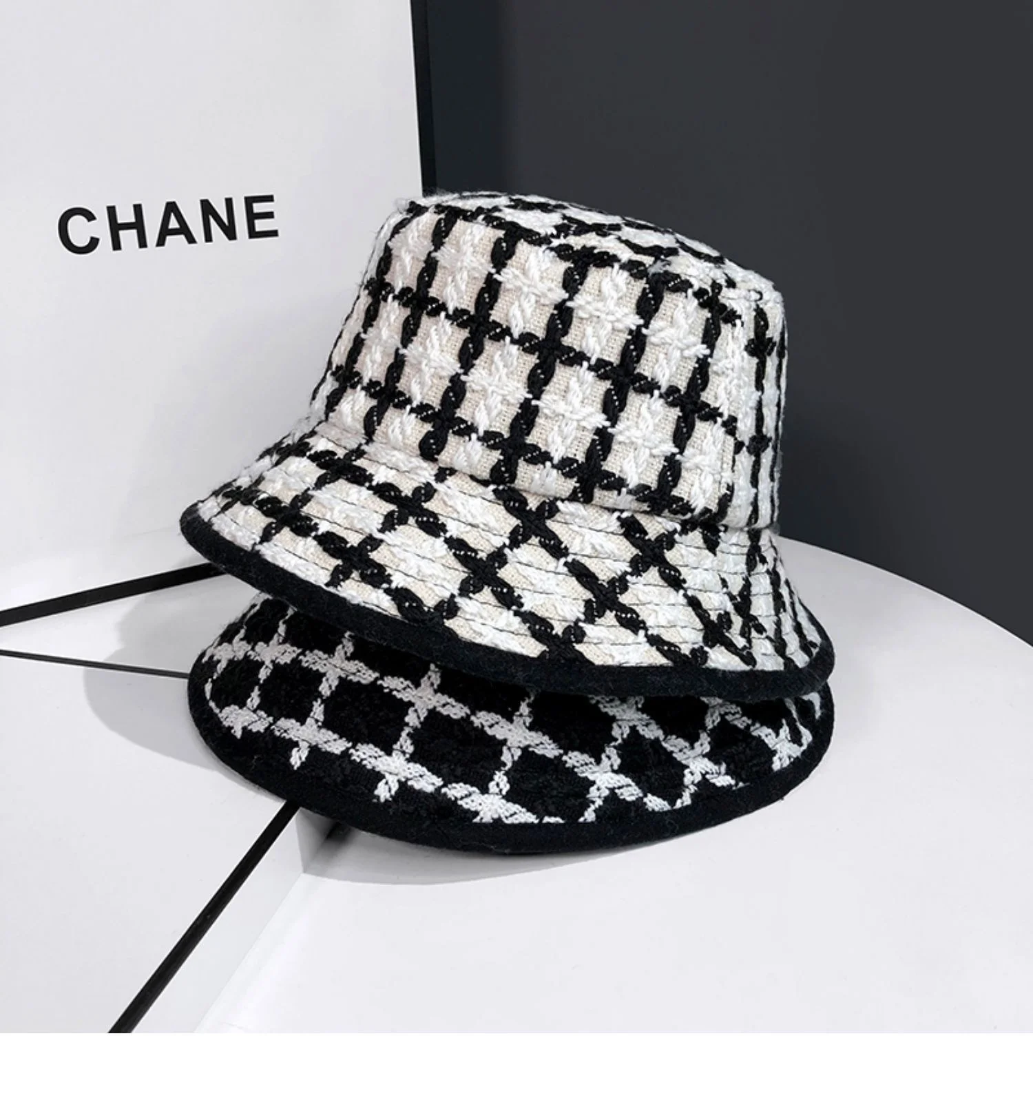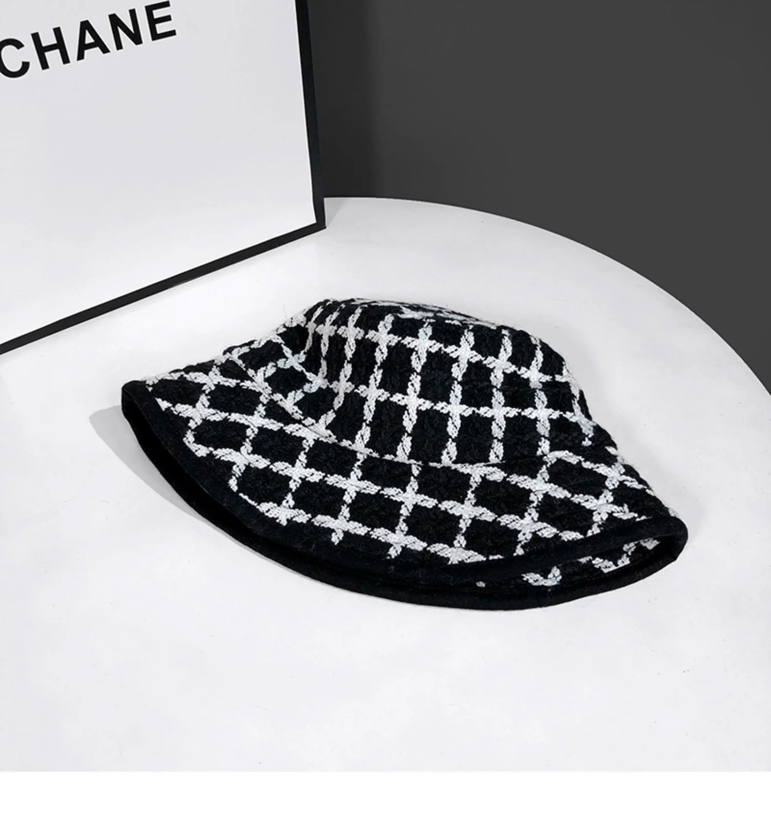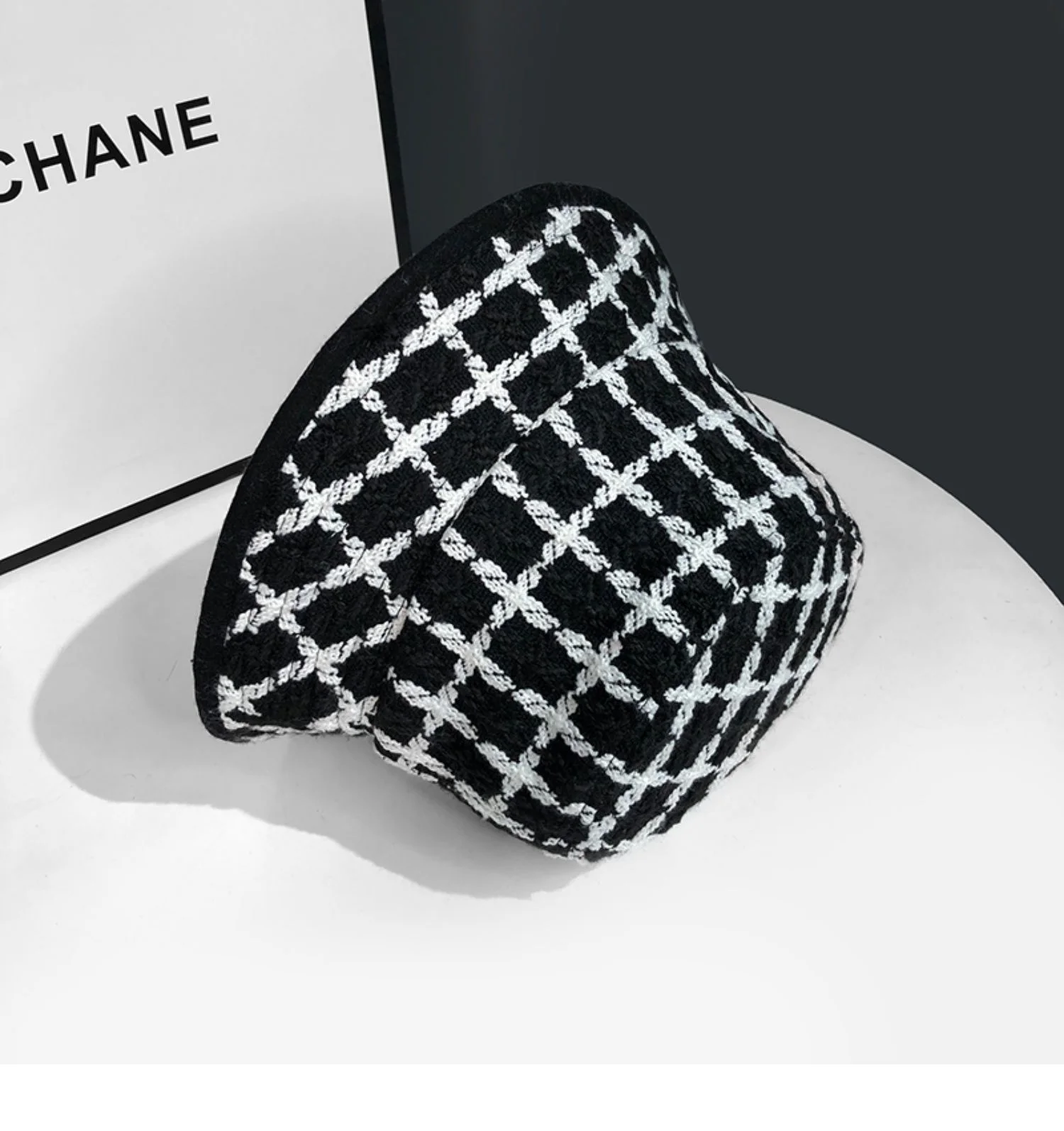 Осенне-зимняя брендовая вязаная шапка в рыбацком стиле, женская черно-белая Панама в сетку, женская дизайнерская Роскошная шляпа