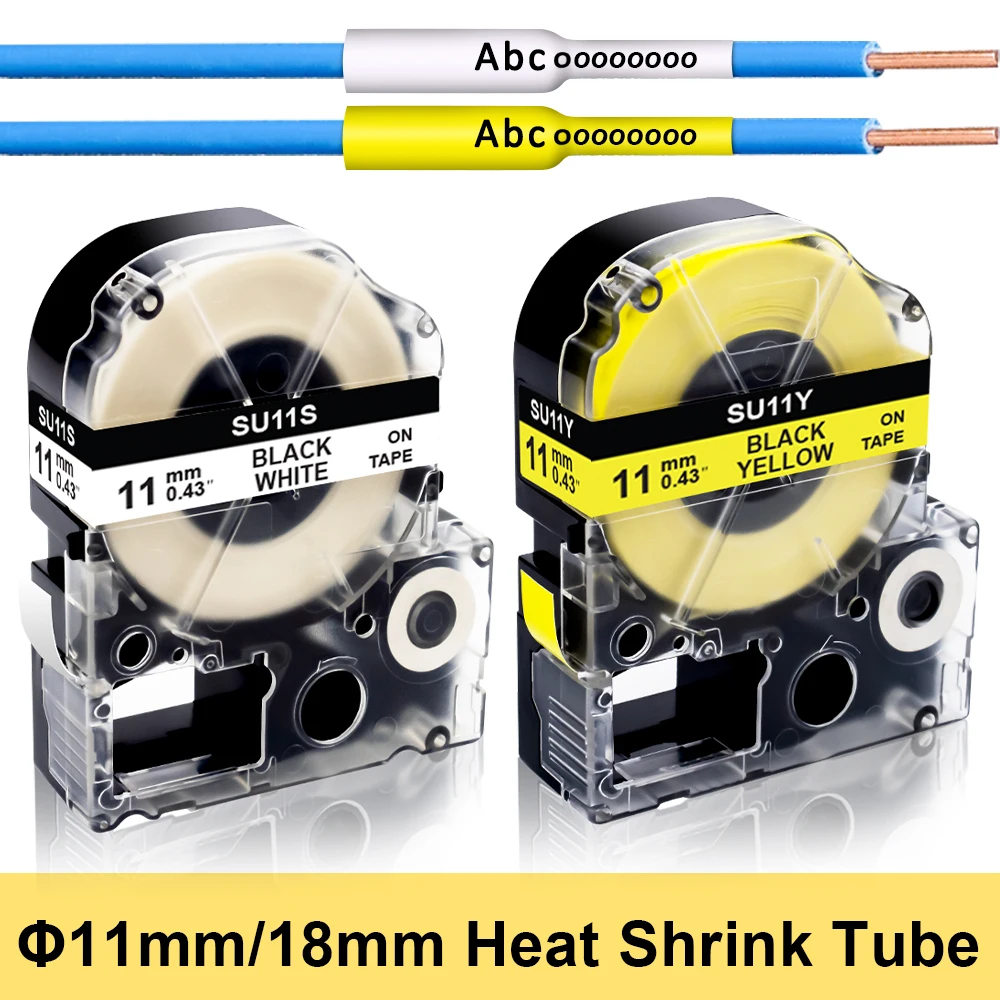 Labelwell 1 шт. Φ11мм/18 мм LK-6WBA11 LK-6YBA11 термоусадочная трубка совместима с Epson Kingjim SU11S SU11YЧерный на белом/желтом ярлыке дляLW-400 LW-500 принтер этикеток
