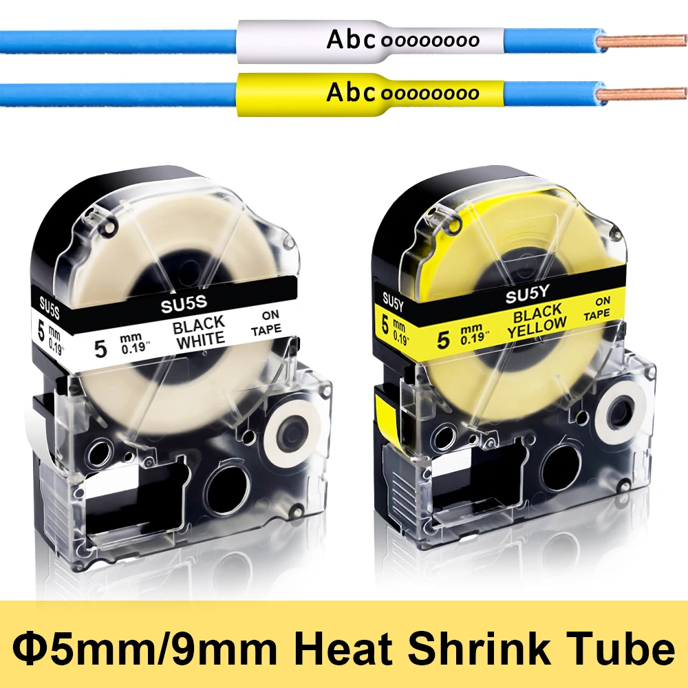 Labelwell 1 шт. Φ5мм/9 мм LA-4WBA5 LA-4YBA5 термоусадочная трубка совместима с Epson Kingjim SU5S SU5YЧерный на белом/желтом ярлыке дляLW-300 400 принтер этикеток