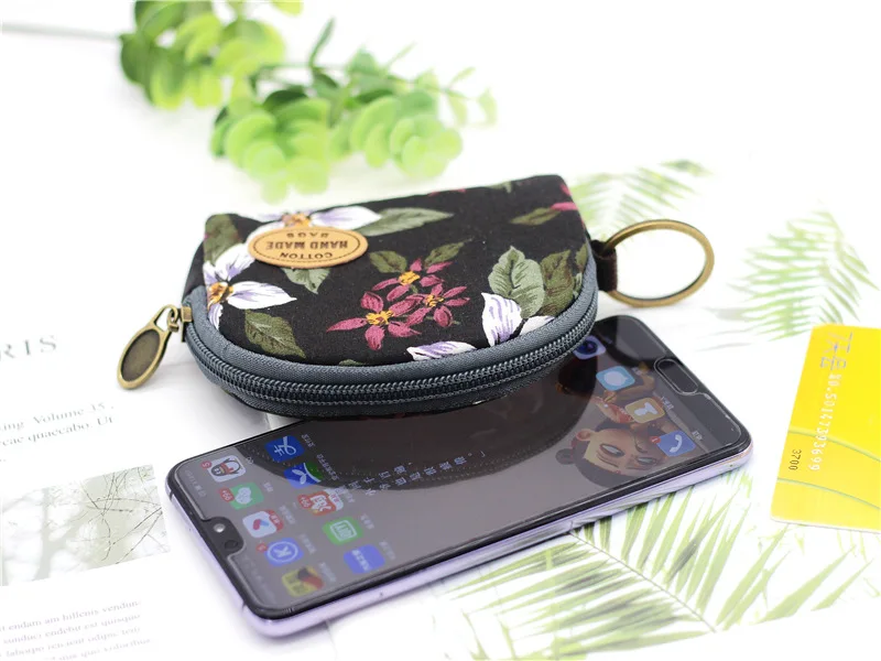 1 шт. свежий длинный лист цветок полукруг портмоне ткань женский бумажник с отделениями для карт маленькая сумка для мелочи ретро холст женские ручные кошельки сумка