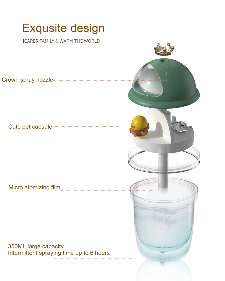 Увлажнитель * 1, USB кабель * 1, руководство * 1