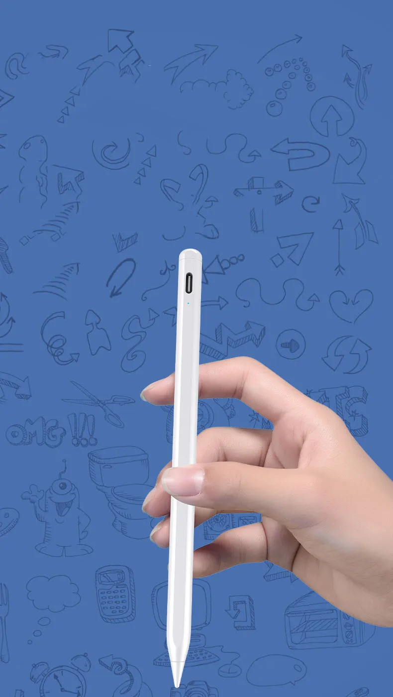 No need to download apps and Bluetooth connection, just touch the end of the pencil to turn it on/off, once the indicator light turns blue, the pencil is active, and it will automatically enter the "sleep mode" after 5 minutes of inactivity "To save power. It can work continuously for 12 hours, and it can stand by for about 90 minutes on a single charge.