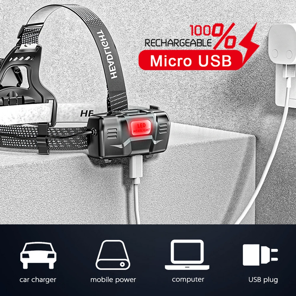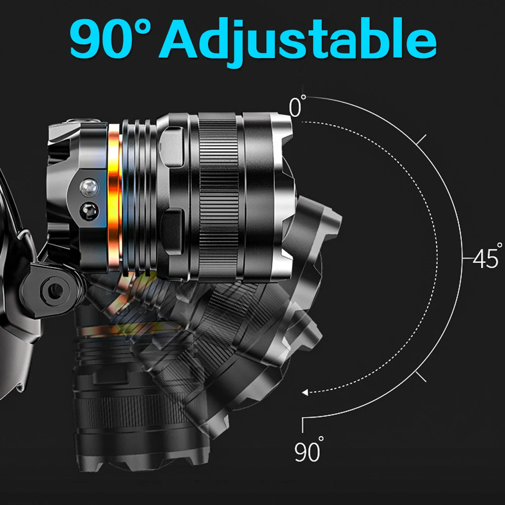 Самый яркий XHP 50 светодиодный налобный фонарь, водонепроницаемый датчик движения, перезаряжаемый налобный фонарь с поворотом на 90 °, регулируемые бегуны, лампа для кемпинга