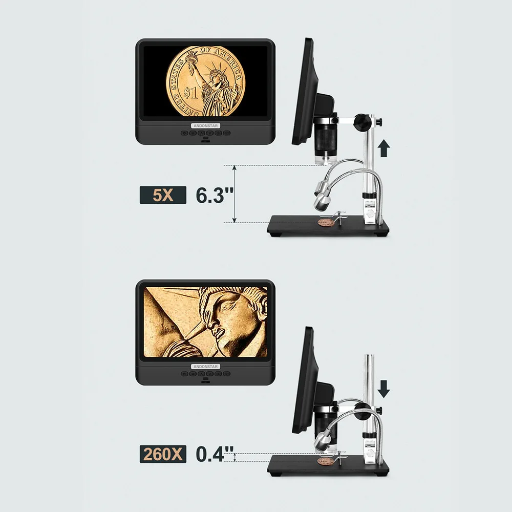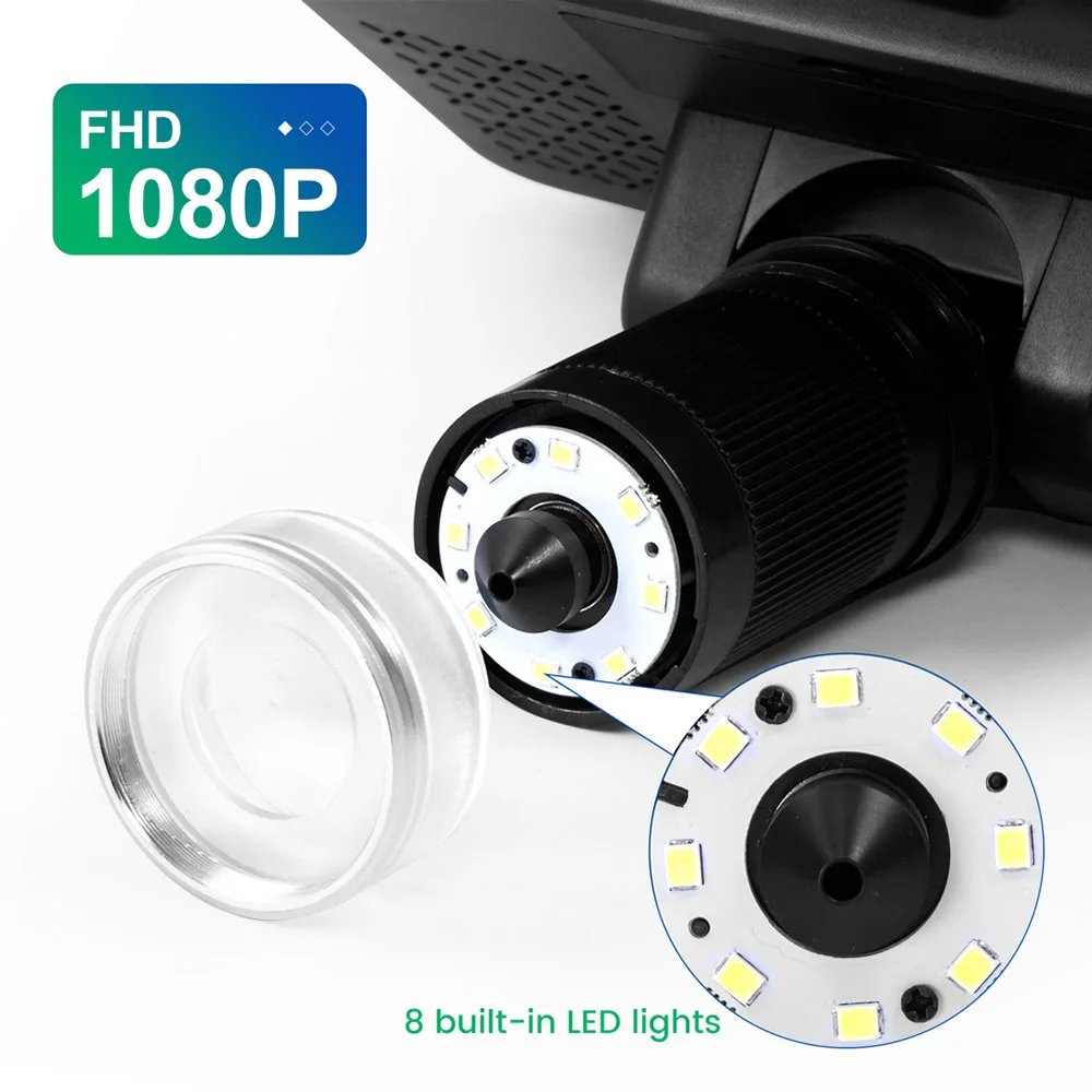 Микроскоп встроен в 8 Светодиодный светильник и 2 гибкие вспомогательные лампы для четкого освещения зоны наблюдения или объекта.