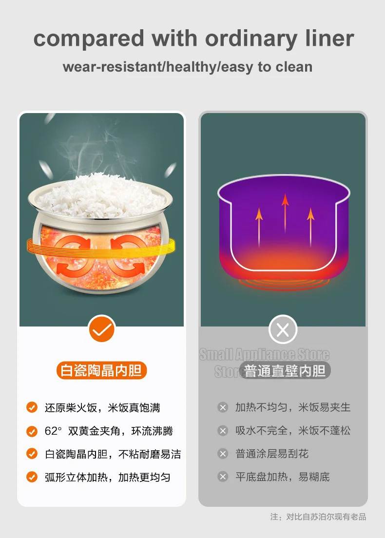 ●2.3L capacity, can cook 6 bowls of rice at a time, suitable for 1-4 people
