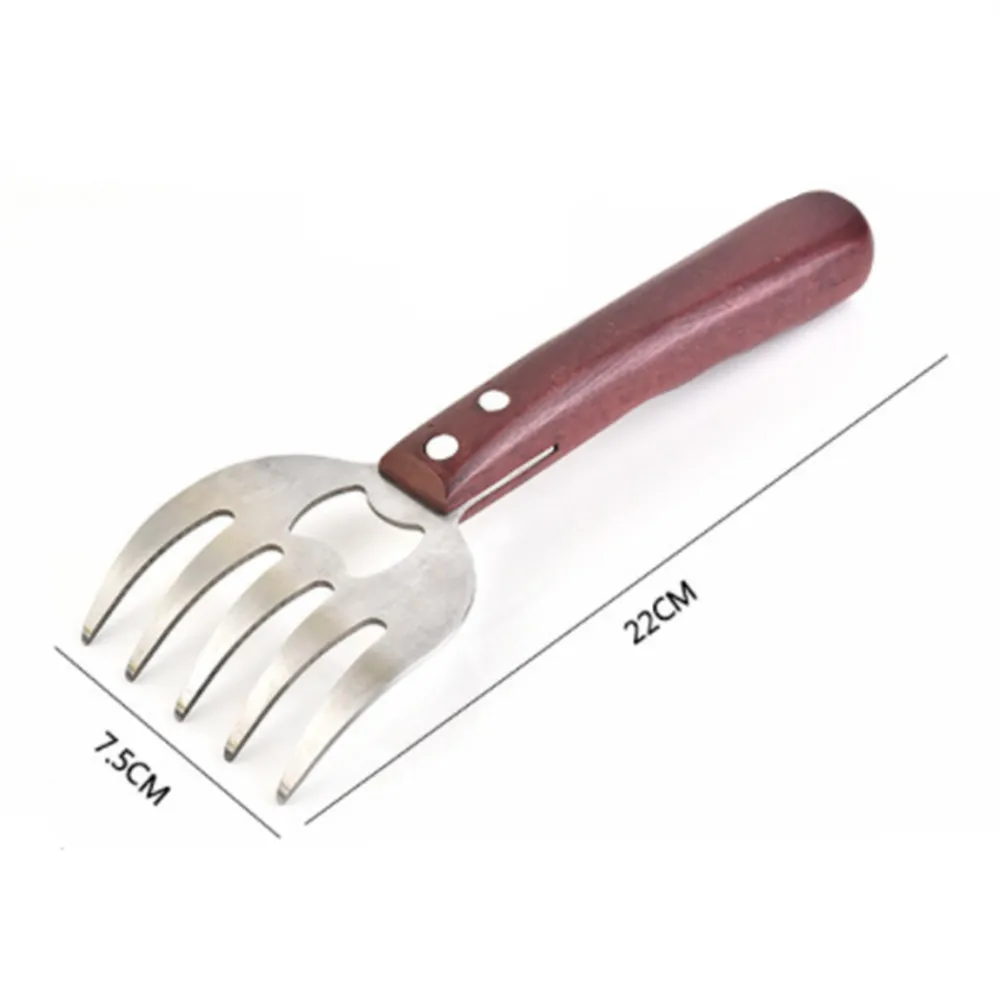 Высококачественная нержавеющая сталь, в сочетании с деревом, создает ручку, хорошо себя чувствует и может поддерживать порядок, особенно когда руки мокрые или жирные, мясной коготь имеет функцию анти-масштабирования.