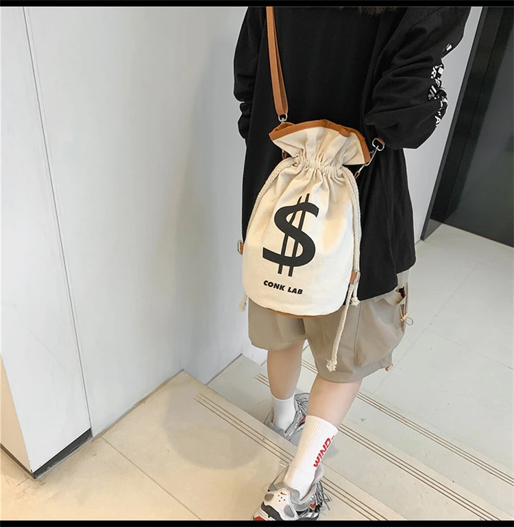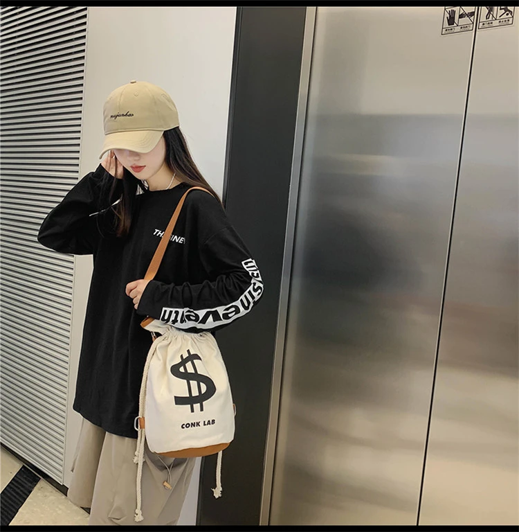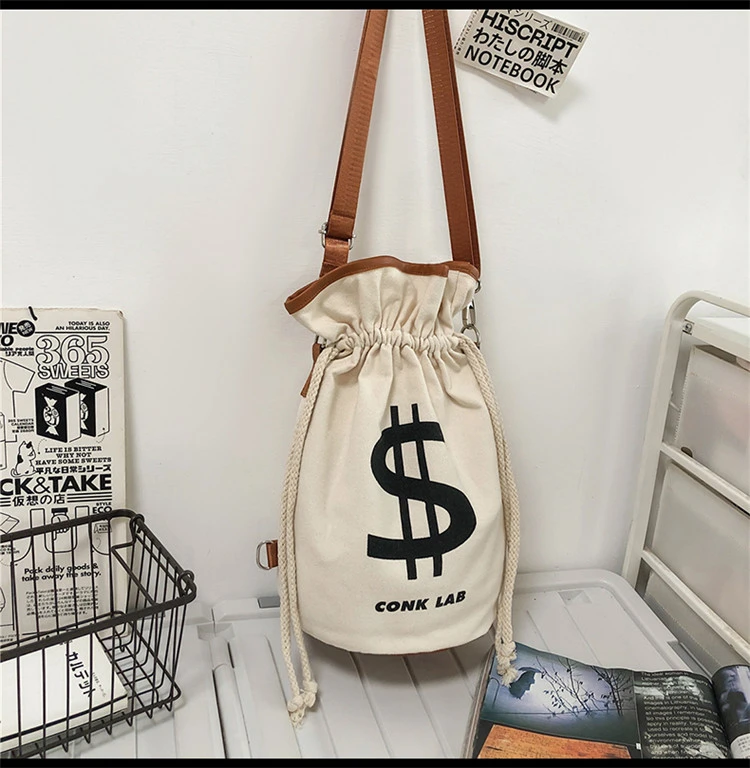 Индивидуальная сумка-ведро с принтом доллара, сумки, рюкзак 2021, модная Холщовая Сумка через плечо, женская сумка через плечо для покупок