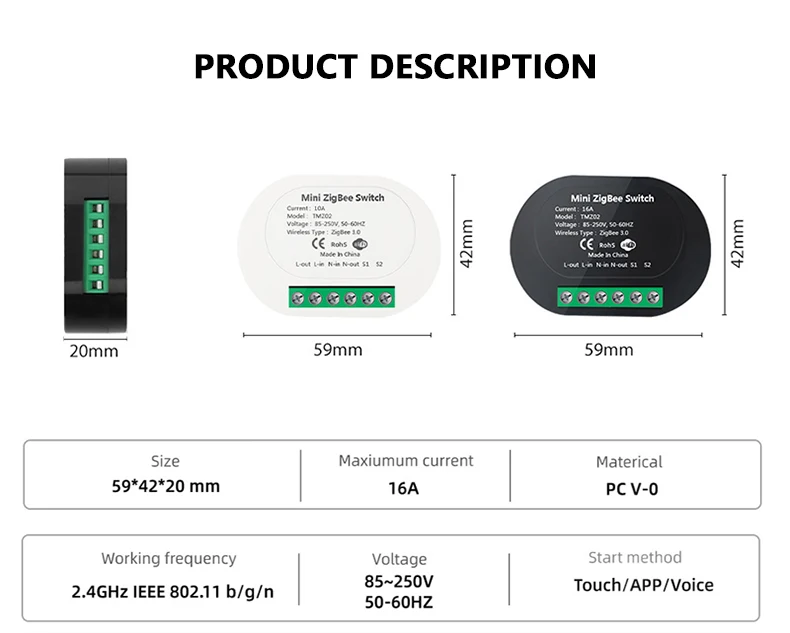 * 59 мм x 42 мм x 20 мм мини-модуль, подходит для большинства Монтажных Коробок.