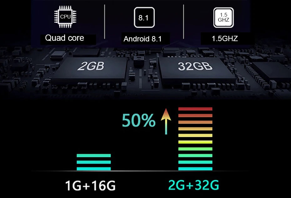 2G RAM + 32G ROM, системы Android 8,1