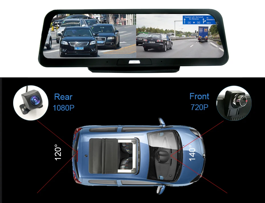 Это устройство поставляется с двумя широкоугольными камерами и может для передней и задней части вашего vehide.Фронтальная 1280*720P, задняя 1920*1080P; Две HD камеры могут записывать одновременно автоматически захватывая каждый мимолетный момент.