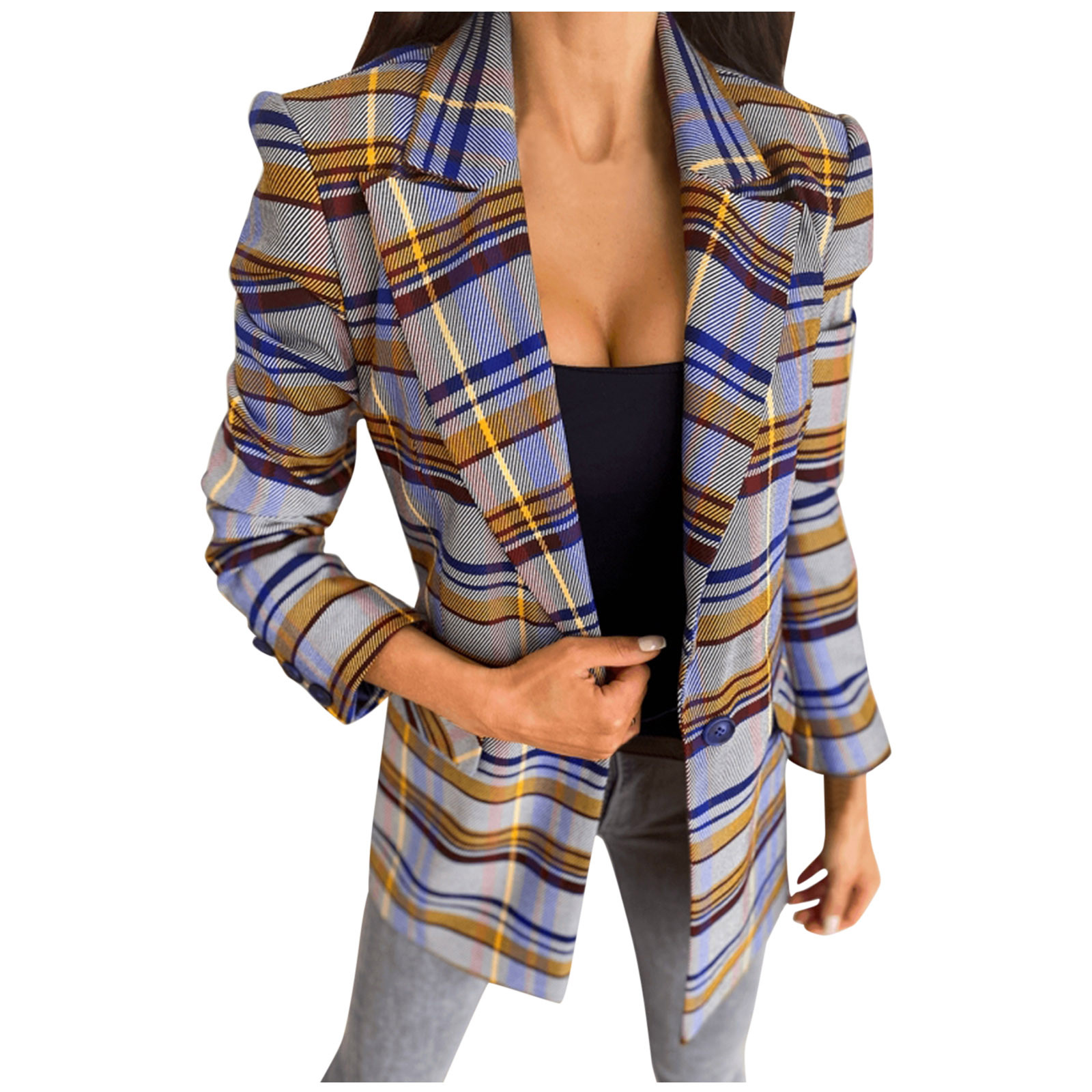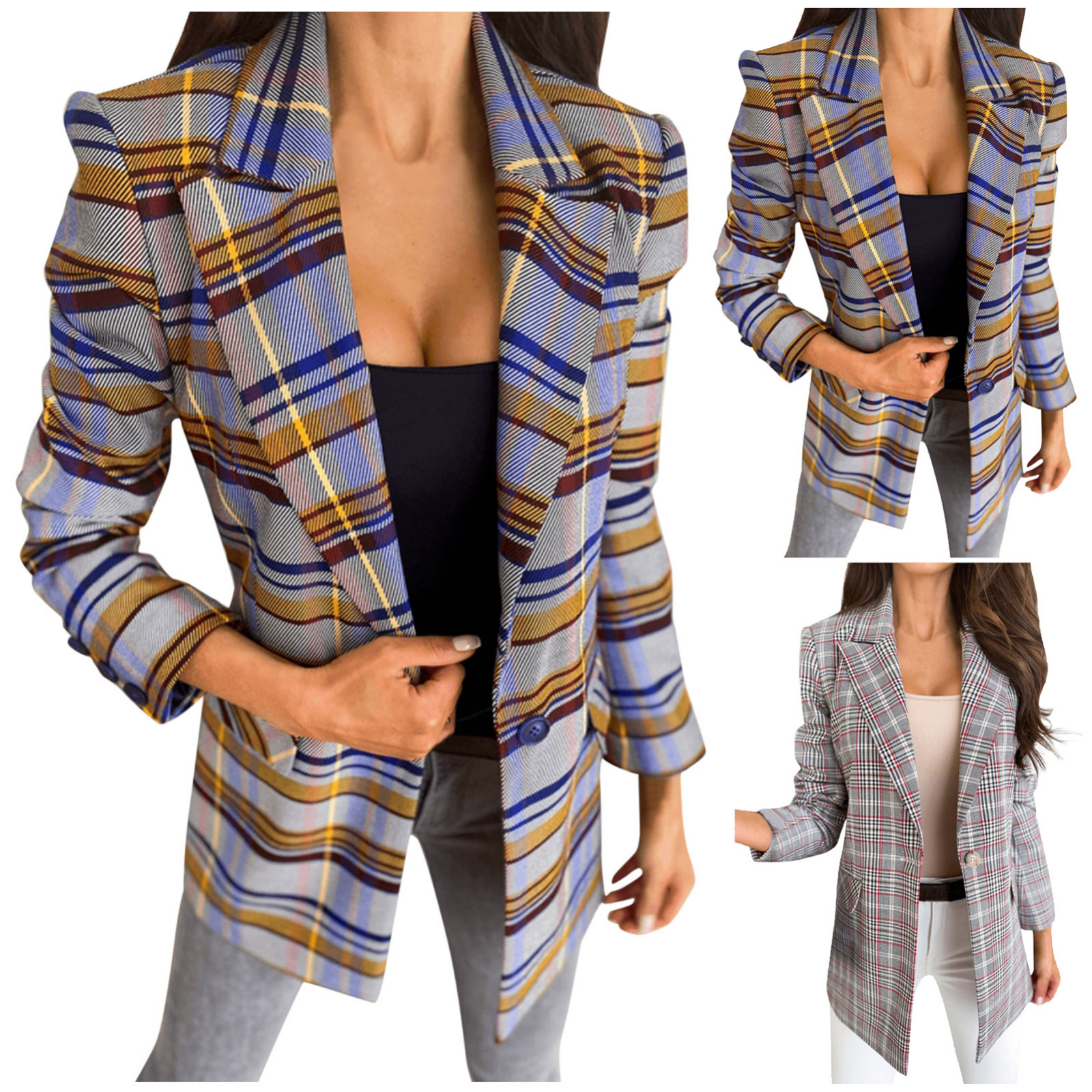 Особенности:Базовая Женская куртка с воротником с лацканами, с одной пуговицей спереди, с двумя фальшивыми карманами, идеально подчеркивает шикарный вид.
