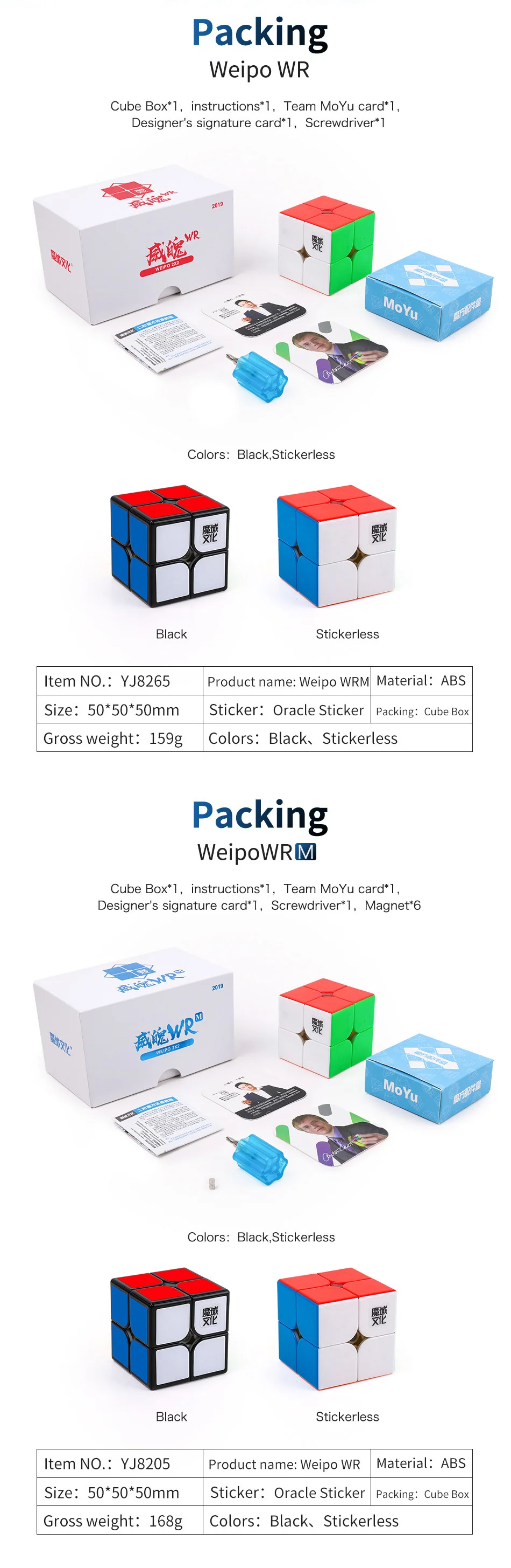 MoYu WeiPo WRM Магнитный/WR 2x2x 2 скоростной магический куб WeiPo WR 2x2 профессиональный волшебный куб для детских игрушек