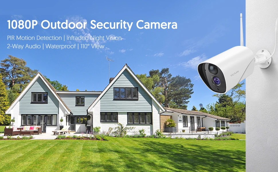 Полное разрешение 1080PЭта наружная камера с разрешением 1080 P (1920*1080) может передавать более четкое и красочное изображение в дневное время. В отличие от 720 P, он может предоставить вам лучшее видение и получить более подробную информацию в видео.