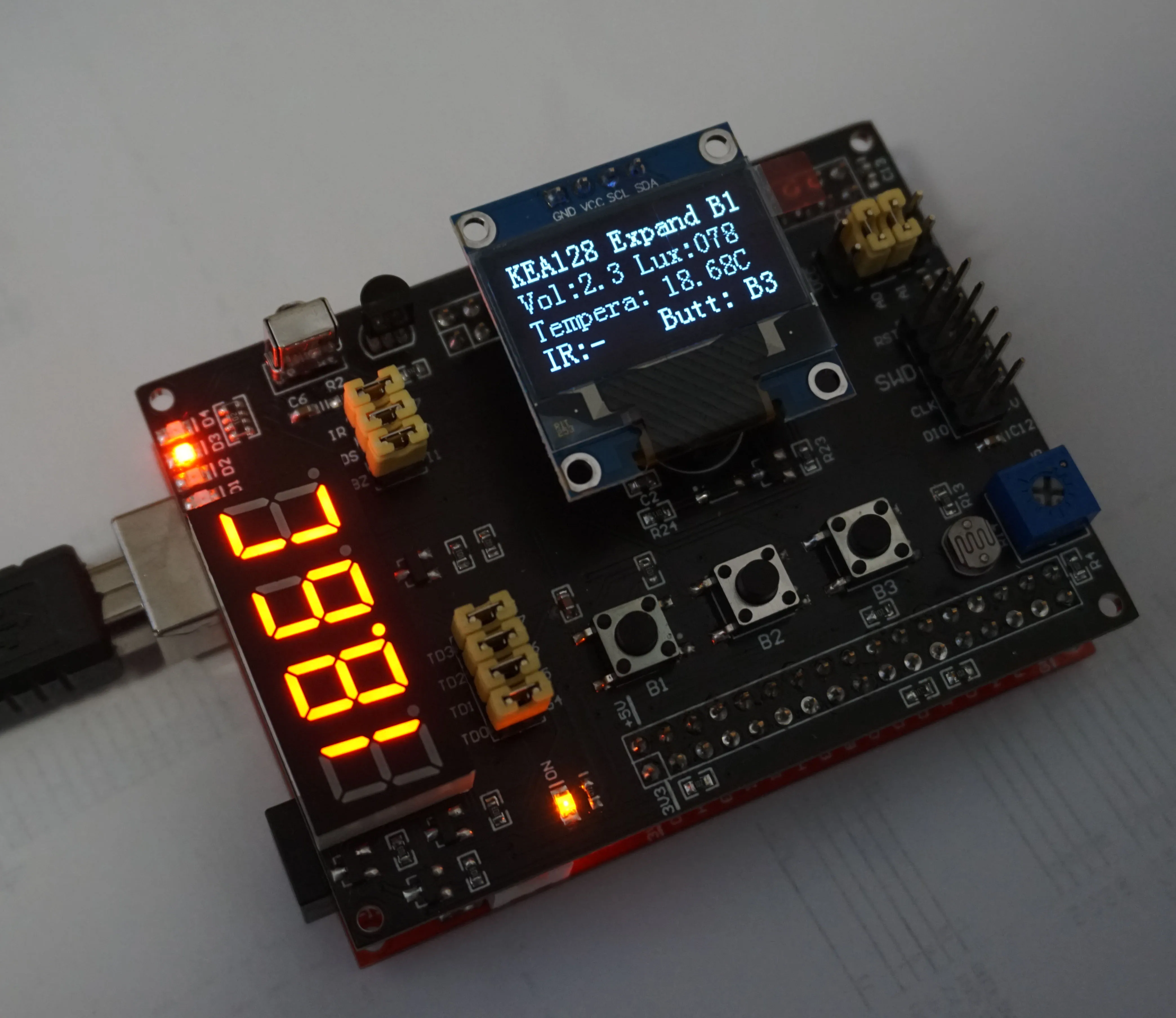 1.5vand3.3vнапряжение совместимость, только один клавишный переключатель. Применимо к системе all5Vand3.3VLevel. Включите переключатель на макетной плате to5v, bekea128чип работает in5Vlower,Hit3.3vThen работает in3.3Crouch, программа не изменяется на всех