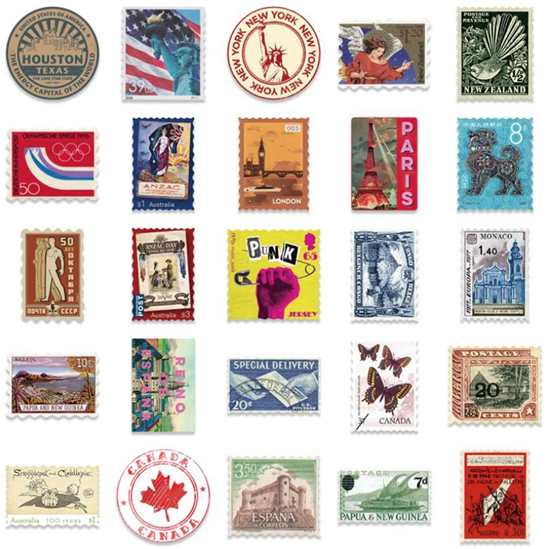 50 шт., ретро-наклейка, для путешествий, Postmark, для строительства, граффити, водонепроницаемые наклейки для DIY ноутбука, чемодана, скейтборда, автомобиля, наклейки