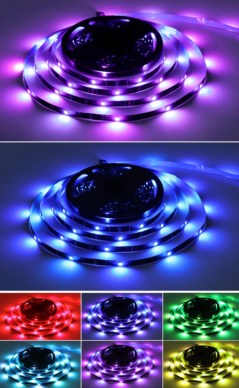 【Светодиодная лента с регулируемой яркостью s】этот набор светодиодных лент RGB имеет 300 высококачественных светодиодов с регулятором яркости и яркости. Можно выбрать 28 динамических режимов, таких как мигание, дыхание, стробоскоп, градиент, прохлада и т. д. Вы также можете сделать свой уникальный цвет, я думаю, что это сделает ваши вечерние более потрясающими. С помощью двухслойной меди на печатной плате, чтобы сохранить смешанные цвета более ровными.