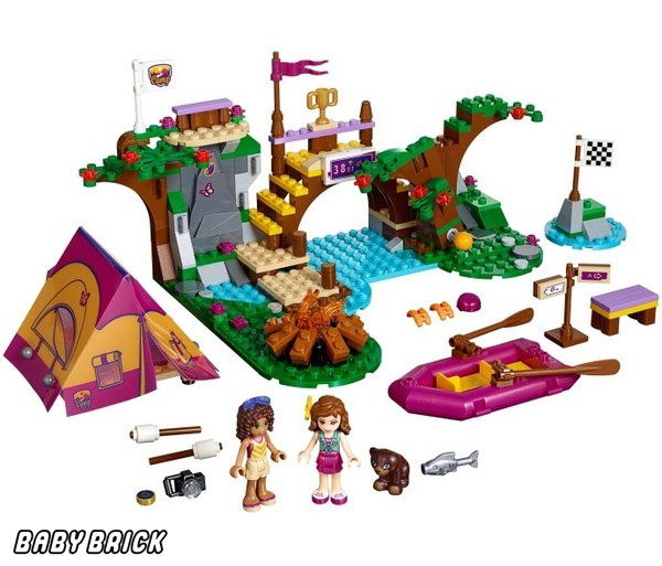 «Спортивный лагерь: сплав по реке» - это набор Lego из серии Friends, предназначенный для девочек старше 6 лет. Из 320 деталей дети построят платформу, на которой расположены деревья, костер, площадка для скалолазания и пьедестал для победителя. В конструктор входят 2 фигурки с подвижными частями тела. По сюжету игры Оливия и Андреа находятся в лагере, в котором занимаются спортом и тренируются сплавляться по реке. Атрибуты в виде лодки с веслами, палатки, шлемов, спортивного инвентаря, фигурок медведя и рыбок позволят разнообразить сюжетную линию.