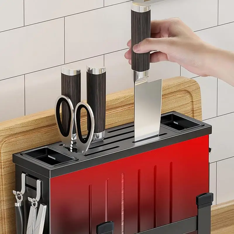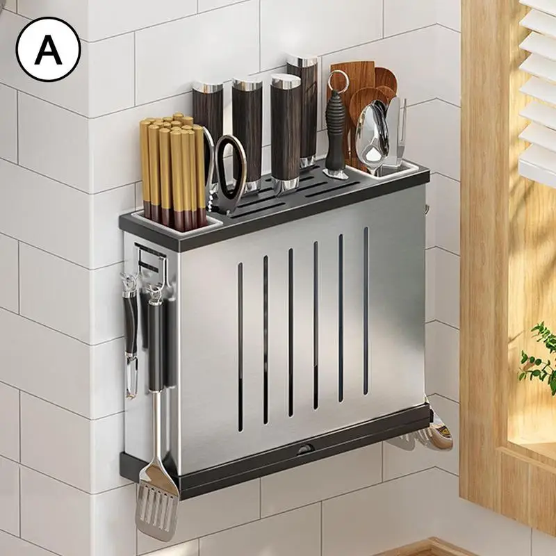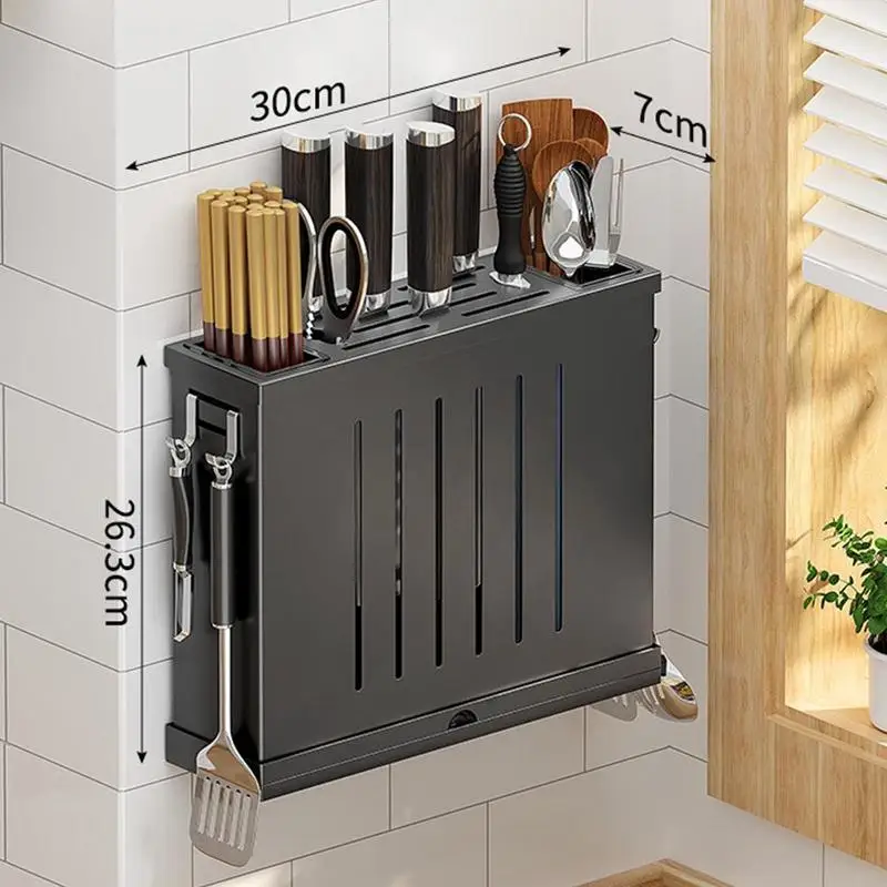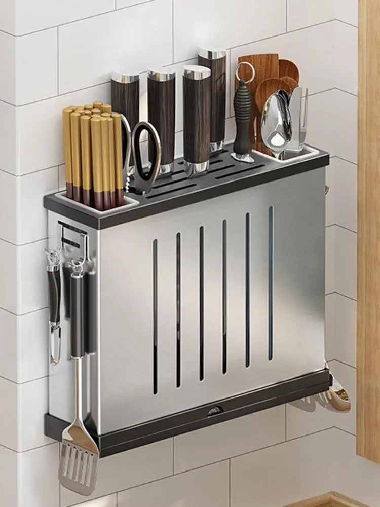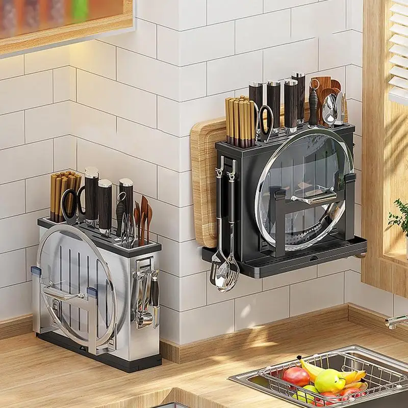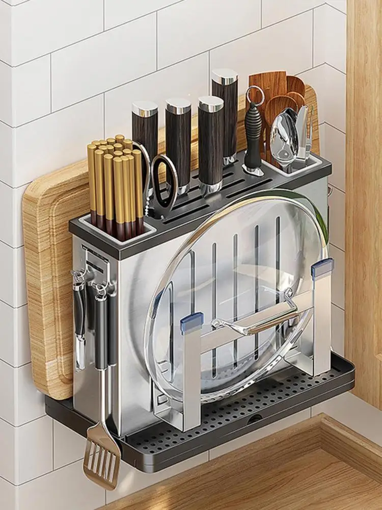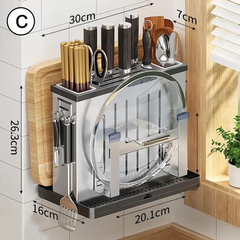 2. Этот продукт включает в себя различные функции хранения, кухонный нож, нож для фруктов, подставка для палочек, разделочную доску, зону покрытия кастрюль, подвижный крючок, чтобы кухня была безопасной и чистой.