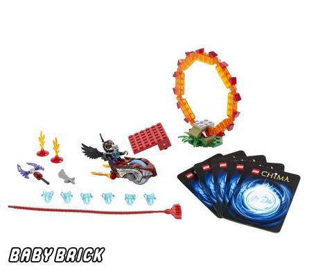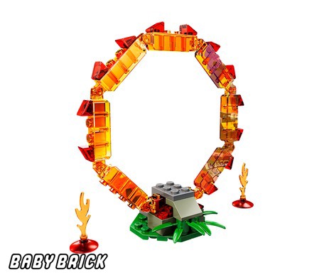 С помощью своего чимацикла ворон Разар из набора Лего 70100 сможет достичь удивительной ловкости и бесстрашия. Его тренировочный комплекс состоит из огненного кольца и трамплина.