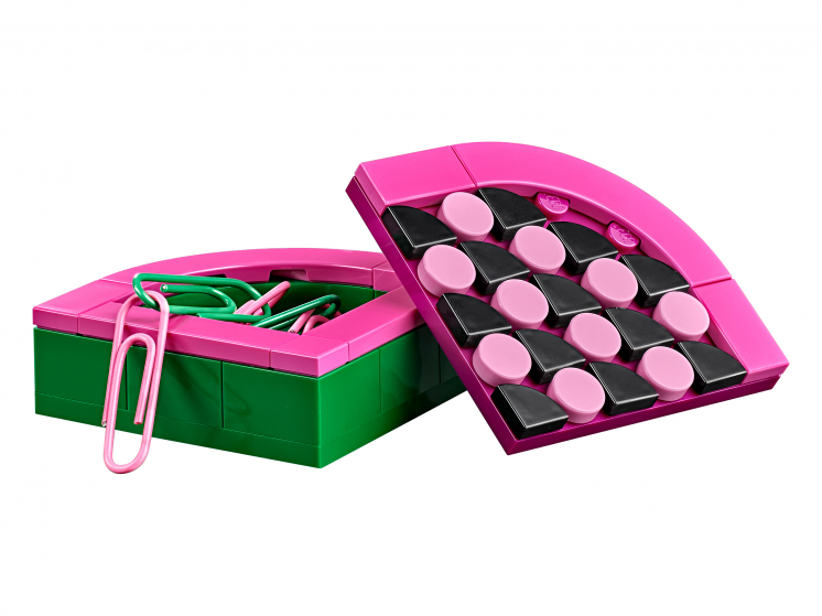 Откройте коробку, чтобы собрать подставку для карандашей и коробочку для канцелярских принадлежностей и придумать для них новый дизайн. Простые инструкции сделают сборку весёлой и увлекательной. Хранить и сортировать детали стало намного проще благодаря специальному лотку, входящему в набор.