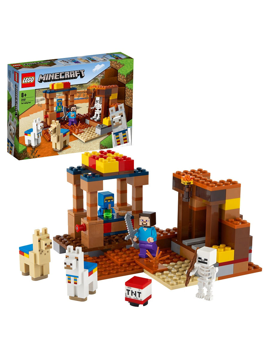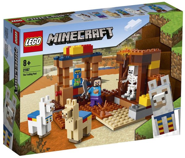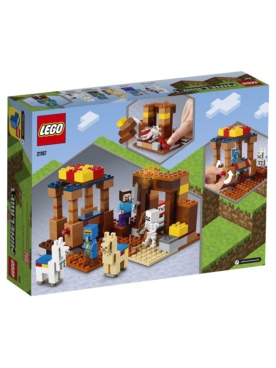 «Торговый пост» LEGO® Minecraft™ (21167) — многогранный набор, включающий в себя множество функций для увлекательных классических игр Minecraft, в том числе функции добычи полезных ископаемых и взрывов, а также фигурки загадочного торговца, вражеского скелета и двух лам, разгуливающих на свободе.