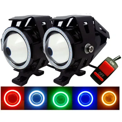 Светодиодный прожектор для мотоцикла, белый, синий, красный, ангел, глаз, дьявол, глаз, фара для мотоцикла, U7, Hi/Lo, мигающий, DRL, яркая вспомогательная лампа