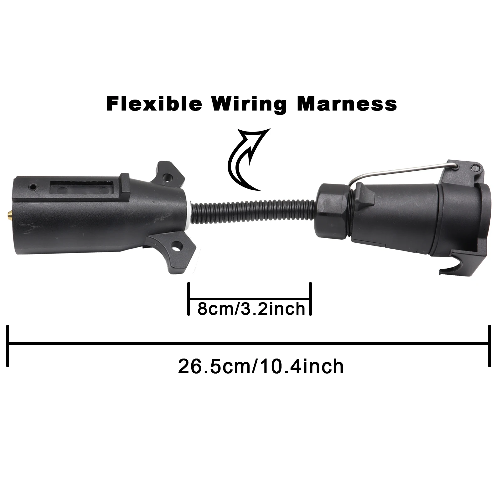 Описание: -- Светильник прицепа питания: подключение между вилкой прицепа и транспортным средством -- В том случае, если ваш автомобиль имеет 7-полюсный RV лезвие гнездо, и ваш прицеп 7-контактный круглый разъем, где ваш автомобиль нужно отделить стоп-сигнала и хвост сигналы, этот трейлер адаптер для проводки необходимо использовать. Характеристика: -Тип изделия: разъем адаптера прицепа -- Состояние на 100% абсолютно новый -- Материал: пластик + металл -Цвет: черный -Гибкий провод обеспечивает больший радиус поворота, что делает его более удобным для использования. -- Изготовлен из качественного пластика и металлического материала, кабель адаптера ударопрочный и устойчивый к коррозии. -- Широкое применение, подходит для большинства прицепов, полуприцеп, RV. -Подключи и работай, не требуется устанавливать новую проводку внутри автомобиля и прицепа. Руководство по установке: A) перед подключением преобразователя к транспортному средству Проверьте, что все сигналы на автомобиле были выключены. B) Подключите конвертер к существующей 7 way RV лезвие разъем на транспортном средстве. C) Вставьте вилку прицепа с другой стороны в гнездо конвертера. D) Проверьте безопасность всех соединений. E) при эксплуатации не требуется техническое обслуживание электрического адаптера. Посылка: 1 x разъем адаптера прицепа