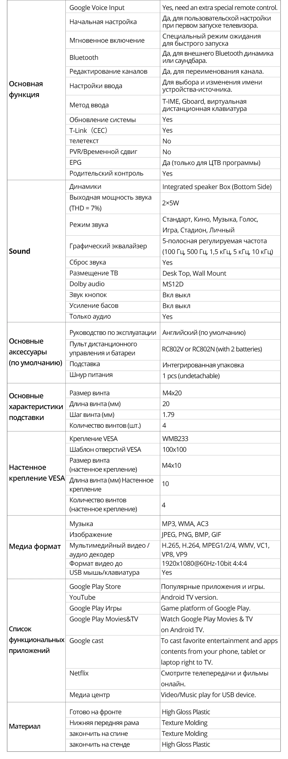 Характеристики