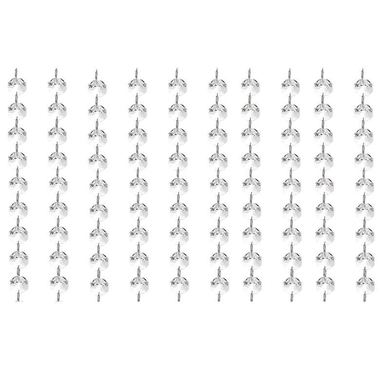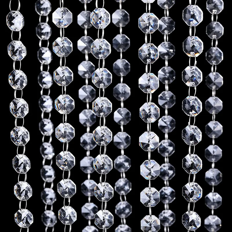 10 упаковок цепочки с имитацией кристаллов: все они удерживаются вместе с легко открывающимися раздельными кольцами. Вы можете соединить цепи или использовать их отдельно. Кристаллы изготовлены из акрила и имеют восьмиугольную форму. Они имеют граненую текстуру, которая делает их сверкающими, когда светильник попадает в них.