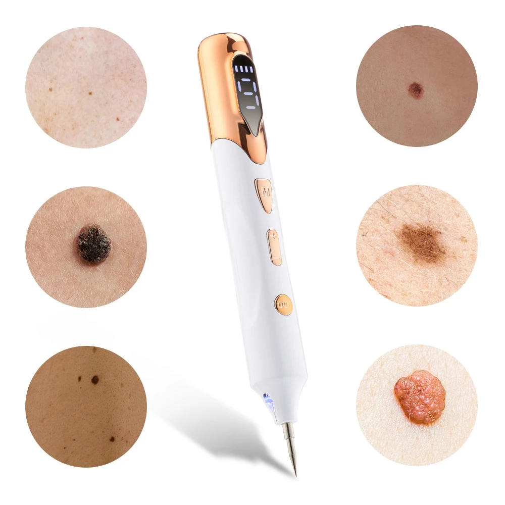 Моль указывая ручка Красота ручка миниатюрный сканирования светлые пятна Pen средства ухода за кожей Красота аппарат девять блоков с синим светильник крот точечная сканирование ручка Красота ручка для удаления родинок светодиодный Экран 9-скорость удаления татуировки Красота уход за лицом для дома