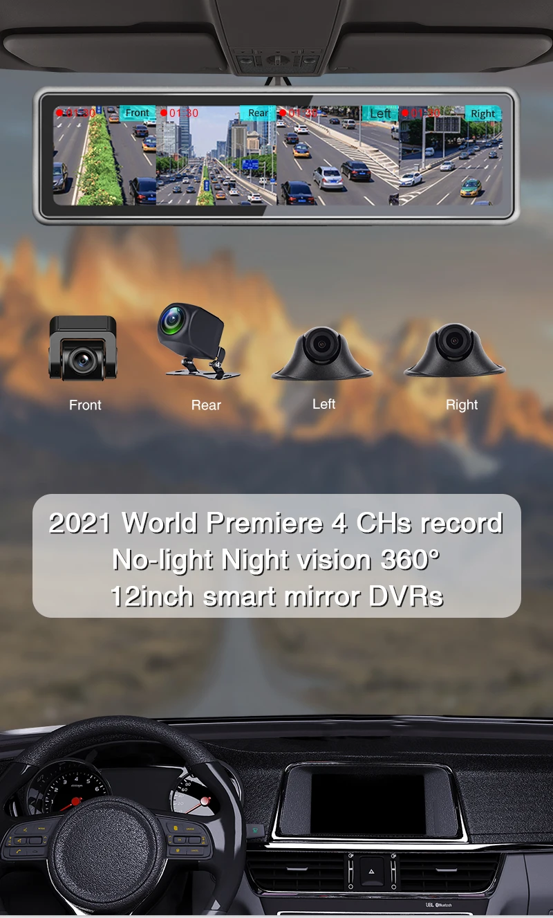 it support the 4 cams record at the same time, thus you could check the situation around your loved vehicle all the time.