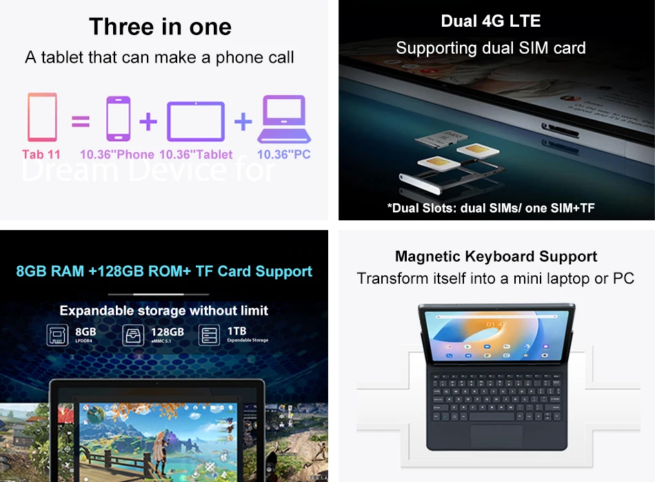 Поскольку Tab 11 поддерживает технологию 4G LTE, вы можете делиться своими забавными моментами в социальных сетях даже без Wi-Fi. Tab11 имеет слот для двух SIM-карт, и позволяет геймерам использовать беспроводное игровое подключение.