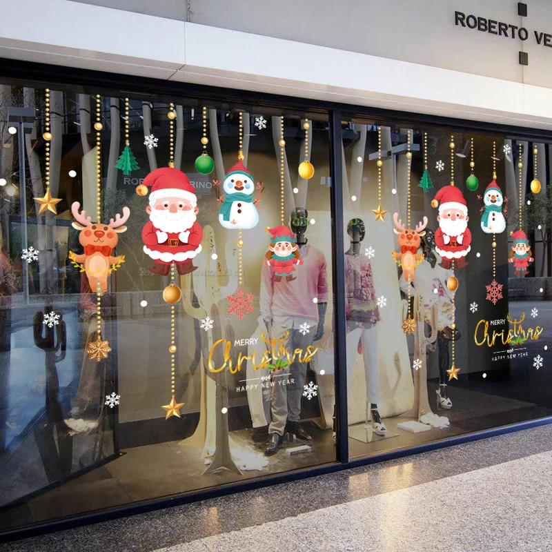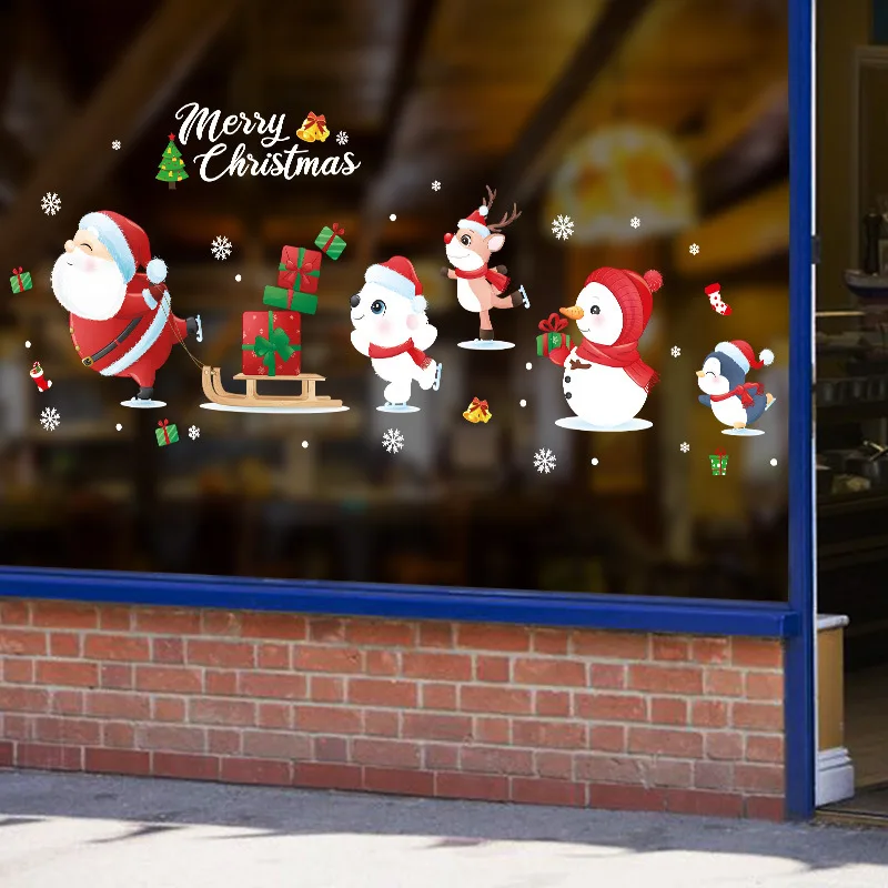 Рождественские наклейки на стену Санта Клаус Лось Снеговик Окно Стекло статическая наклейка рождественские украшения вечерние Новогодние украшения 2022
