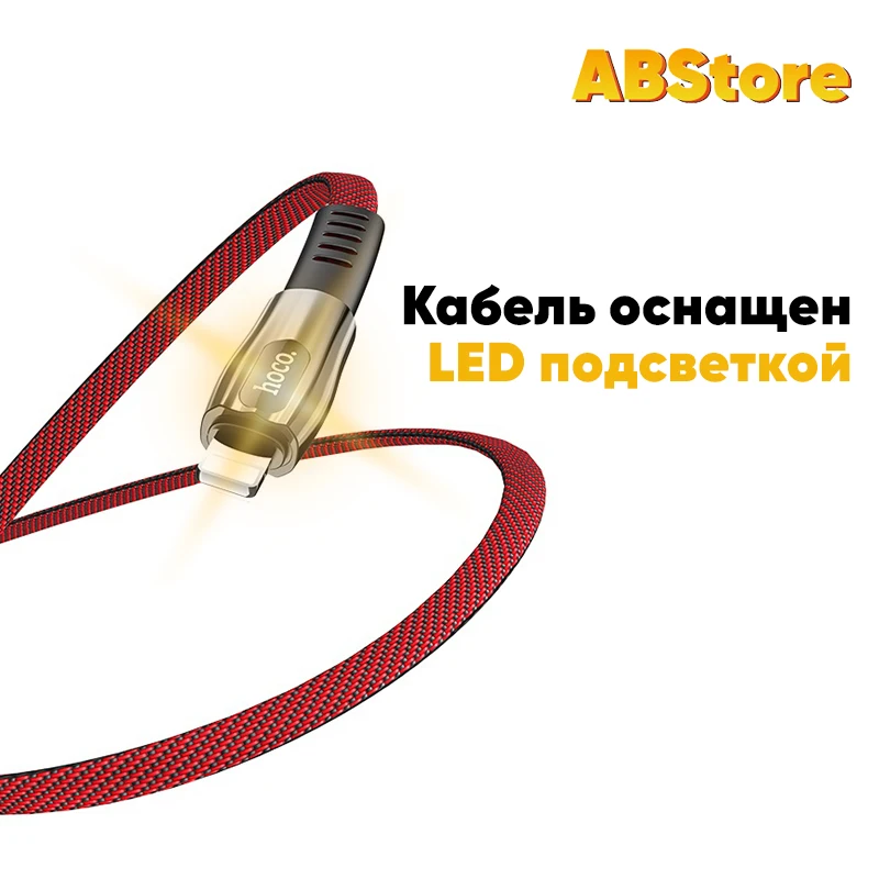 Кабель для зарядки и синхронизации данных с светодиодный подсветкой. Свиной хвост изготовлен из ткани и плоская форма кабеля надежно защищает кабель во время работы. Лучший кабель на каждый день.